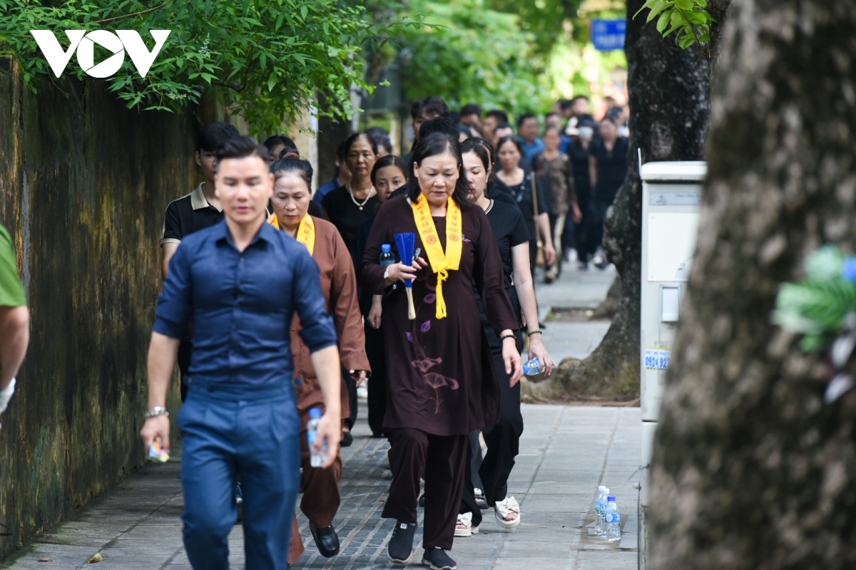 Tại tuyến đường Nguyễn Huy Tự, Lê Thánh Tông, Phạm Đình Hổ. Tăng Bạt Hổ - những tuyến đường dẫn vào Nhà Tang lễ Quốc gia số 5 Trần Thánh Tông (Hà Nội) người dân xếp hàng ngày một dài hơn.