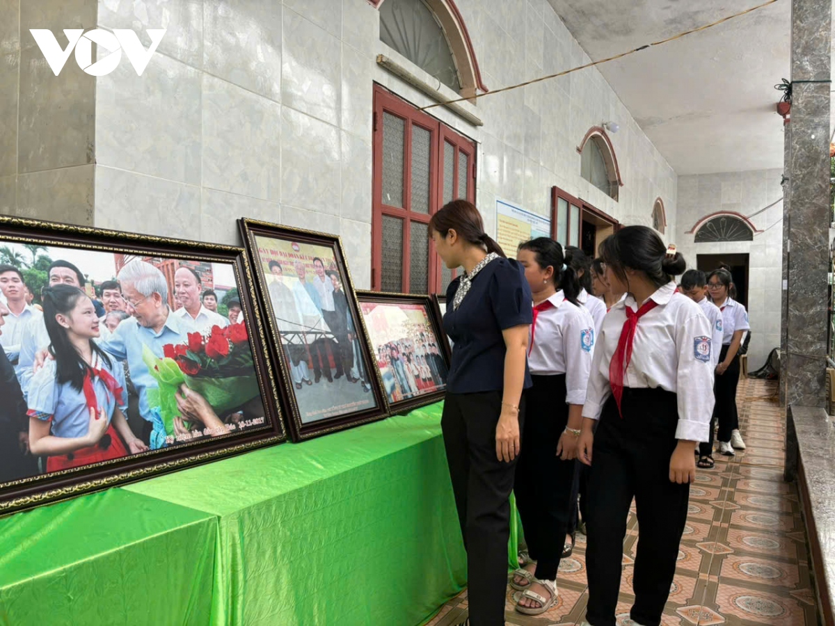 Trong Nhà văn hóa làng Thượng Điện, bàn thờ được đặt trang trọng với chân dung Tổng Bí thư Nguyễn Phú Trọng, phía ngoài là nhiều bức ảnh kỷ niệm của Tổng Bí thư cùng người dân địa phương. Không chỉ người làng Thượng Điện mà rất nhiều người dân ở khu vực lân cận, học sinh các trường học trong huyện Vĩnh Bảo cũng tới đây để tưởng nhớ Tổng Bí thư.