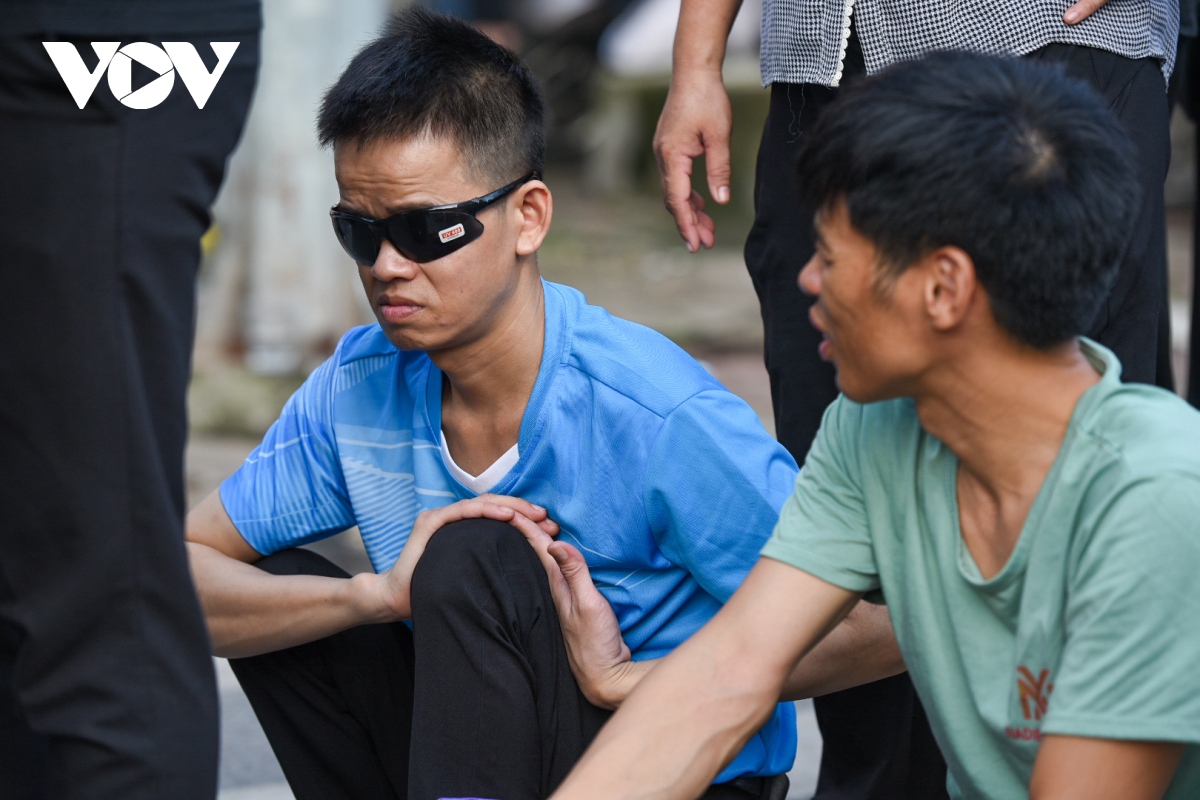 | Chị Nguyễn Thị Hoa 44 tuổi, có mặt từ 6h xếp hàng đến viếng Tổng Bí thư Nguyễn Phú Trọng, chị xúc động khóc nấc không nói nên lời. |