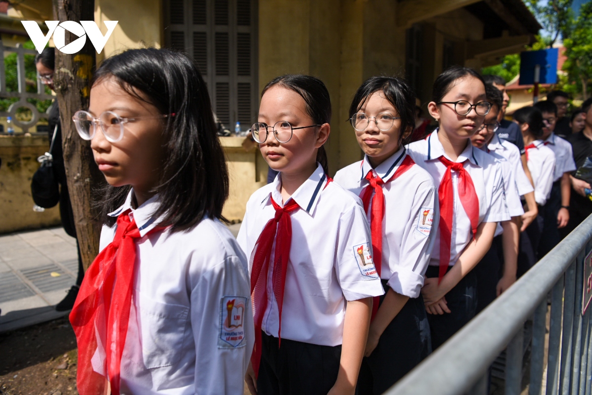 Học sinh Hà Nội không ngại nắng, chờ vào viếng Tổng Bí thư