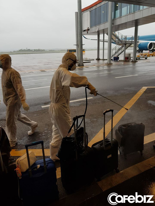 Khi bước khỏi máy bay, tất cả mọi người và hành lý đều được khử trùng. Tất cả mọi nhân viên hải quan, y tế lẫn lái xe đều mặc hazmat kín mít. Hiện tại chính sách là ngừng cấp thị thực cho người nước ngoài, và máy bay giải cứu chỉ dành cho người Việt, nhưng nếu có người nước ngoài nào đến được Vân Đồn thì cũng được cho đi cách ly như người Việt hết. Kiểm tra thân nhiệt và khai báo, ai nhiệt độ cao hoặc khai là có dấu hiệu ho sốt trong vòng 14 ngày đổ lại lập tức được chở đến bệnh viện để kiểm tra. Khử trùng liên tục, bước vào phòng khám khử một lần, ra khỏi phòng khử một lần nữa. Một nhân viên y tế hỏi: có ai đến từ ổ dịch không. Tất cả nói, ở châu Âu bây giờ chỗ nào chẳng là ổ dịch.