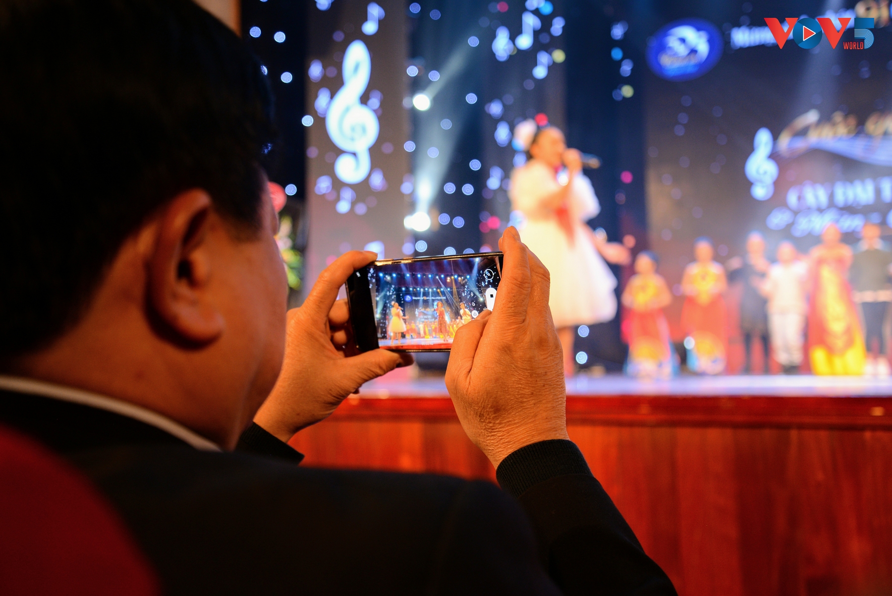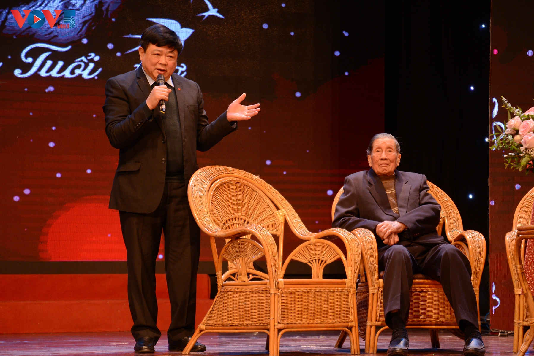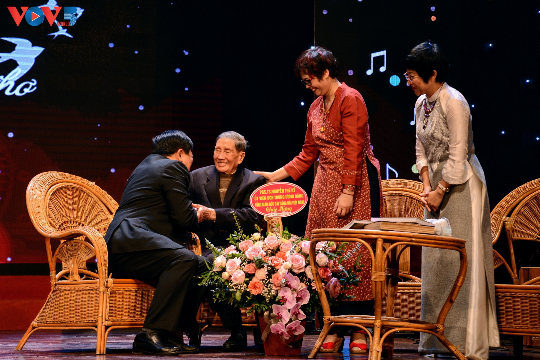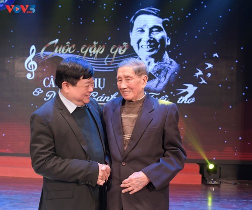 | Tổng Giám đốc Đài Tiếng Nói Việt Nam Nguyễn Thế Kỷ chụp ảnh cùng nhạc sĩ Phạm Tuyên sau chương trình. |