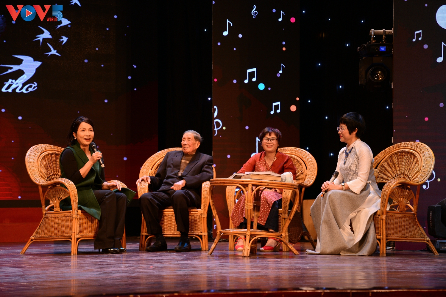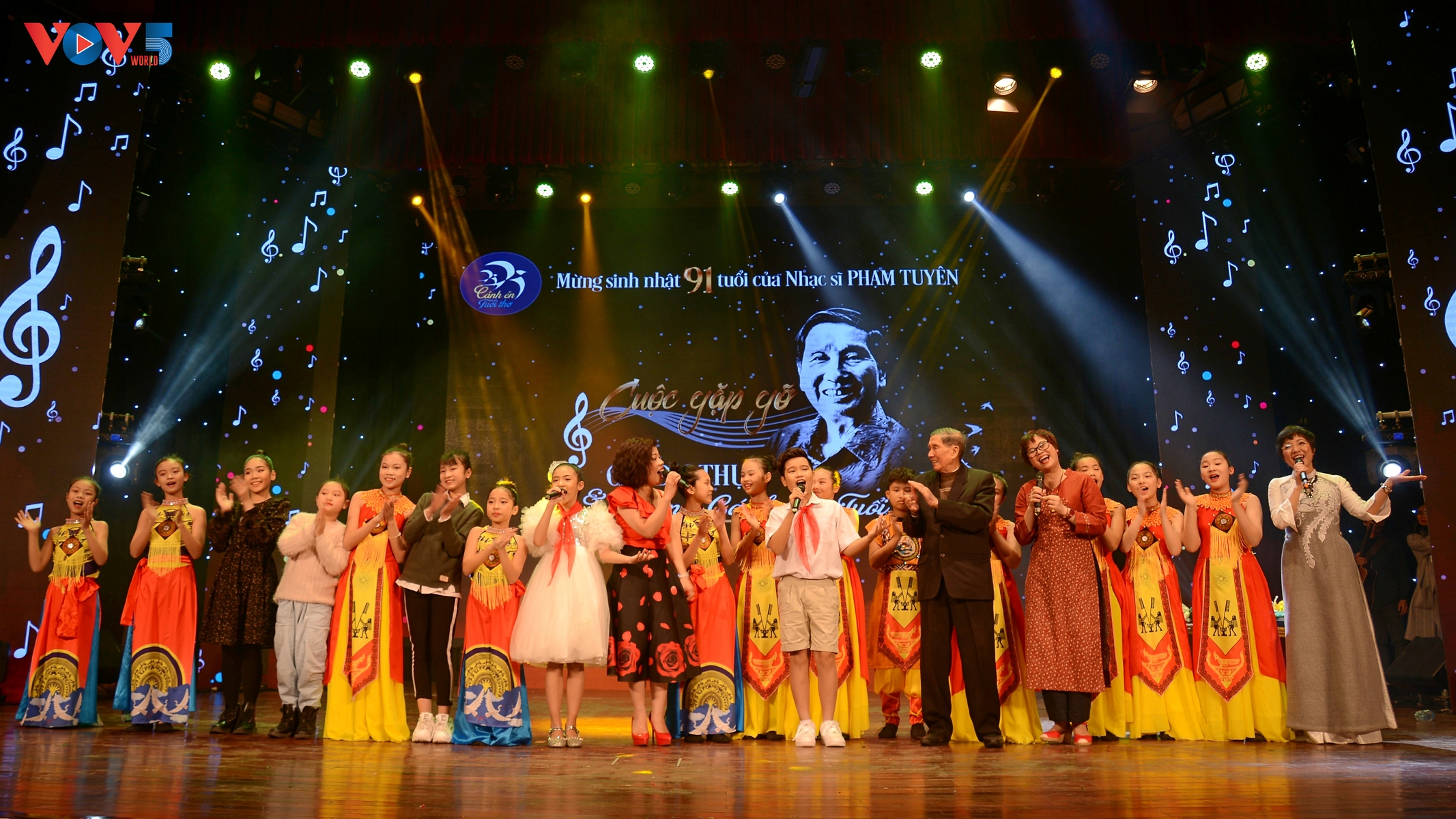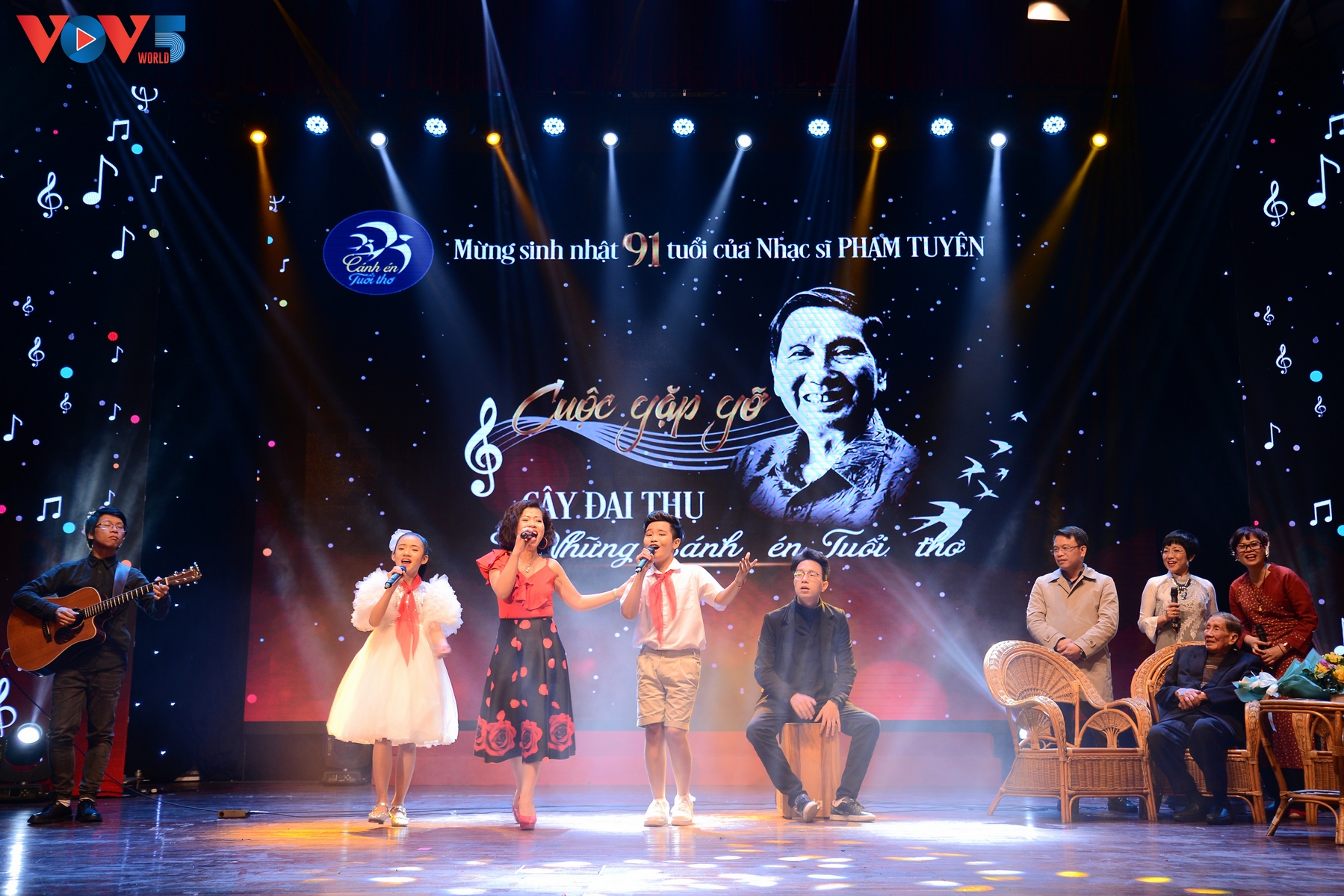 | Đây là cuộc giao lưu ấm áp giữa nhạc sĩ Phạm Tuyên và các em thiếu nhi, nhạc sĩ, ca sĩ, nhà thơ và khán giả thân thiết. |