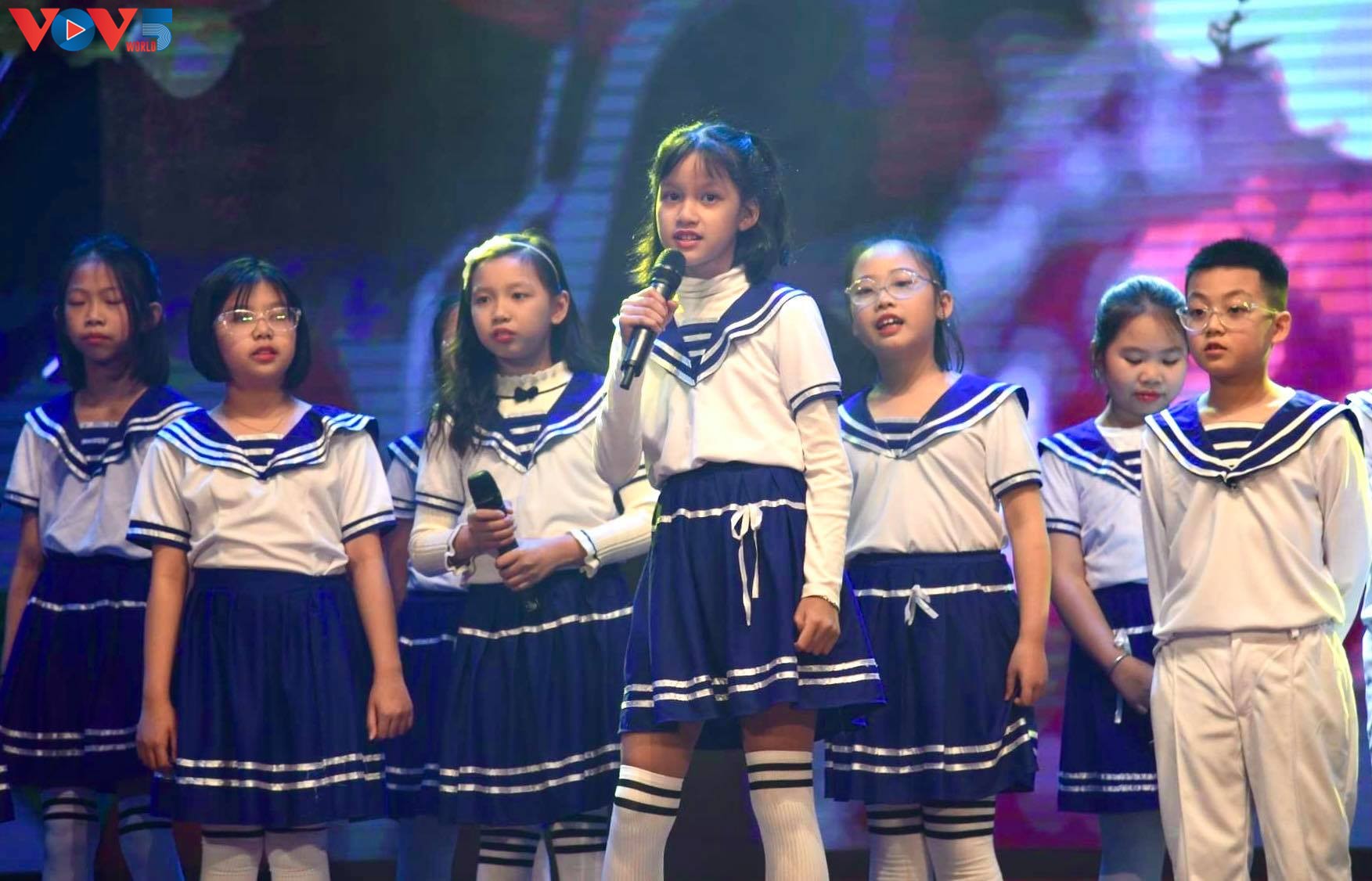 | Ca sĩ Mỹ Linh và các em nhỏ tới từ trường Vinschool trong tiết mục "Nơi ấy Trường Sa". |