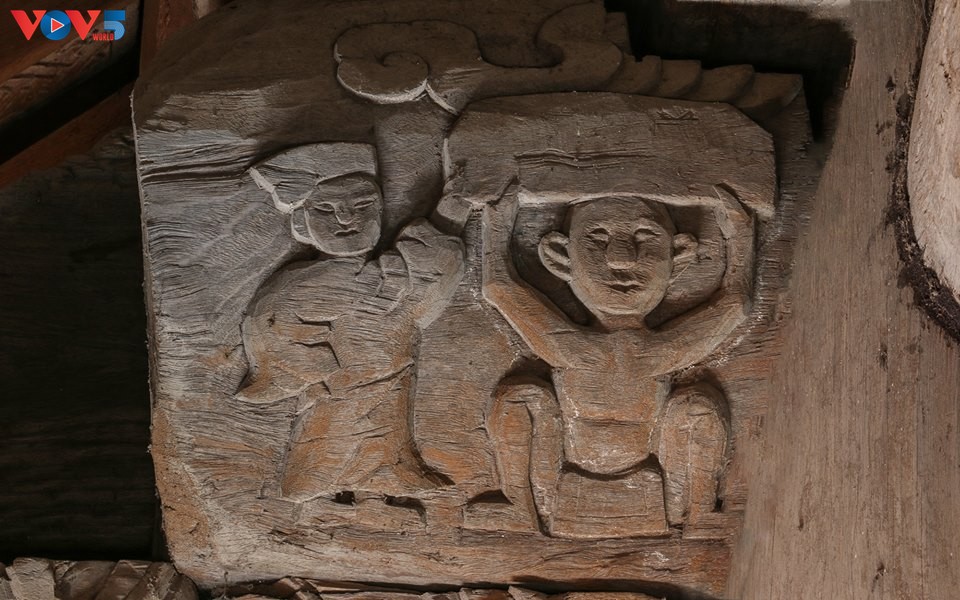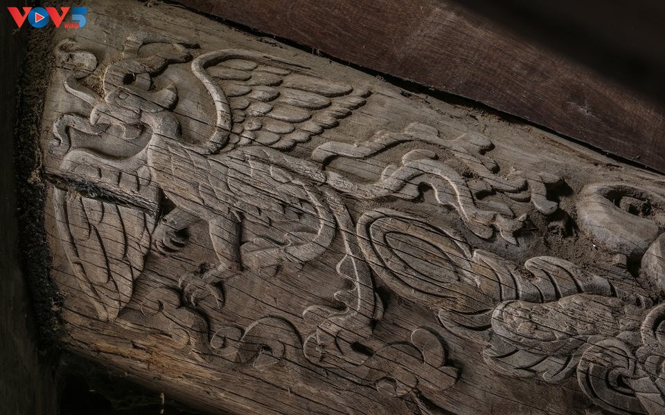 Có thể thấy rõ nhất ở cách người xưa tạo hình rồng ở các bức cốn. Vẫn sử dụng lối tạo hình rồng quen thuộc của xứ Đoài với khuôn mặt hướng ra phía trước, hai mắt to tròn, hai tai xòe rộng, cặp môi dầy nhìn ngộ nghĩnh, đậm chất dân gian. Khác ở chỗ là các đao mác của rồng làm thưa và rất lớn. Tuy vậy mà vẫn mềm mại không bị cứng nhờ những hàng chi tiết trang trí tỉa trên thân đao. Trên đầu và chân rồng cũng có vân xoắn được tỉa kỹ chi tiết trang trí rất đẹp. Với cách tạo hình đấy, rồng của đình Tường Phiêu tuy có đặc trưng của thế kỷ XVII nhưng lại phảng phất phong cách chạm khắc thời Mạc, thế kỷ XVI. Ngoài ra đình vẫn giữ được nhiều mảng chạm quý nói về cuộc sống của người dân thời kỳ đấy như mảng chạm người đội lễ, các mảng chạm linh thú...