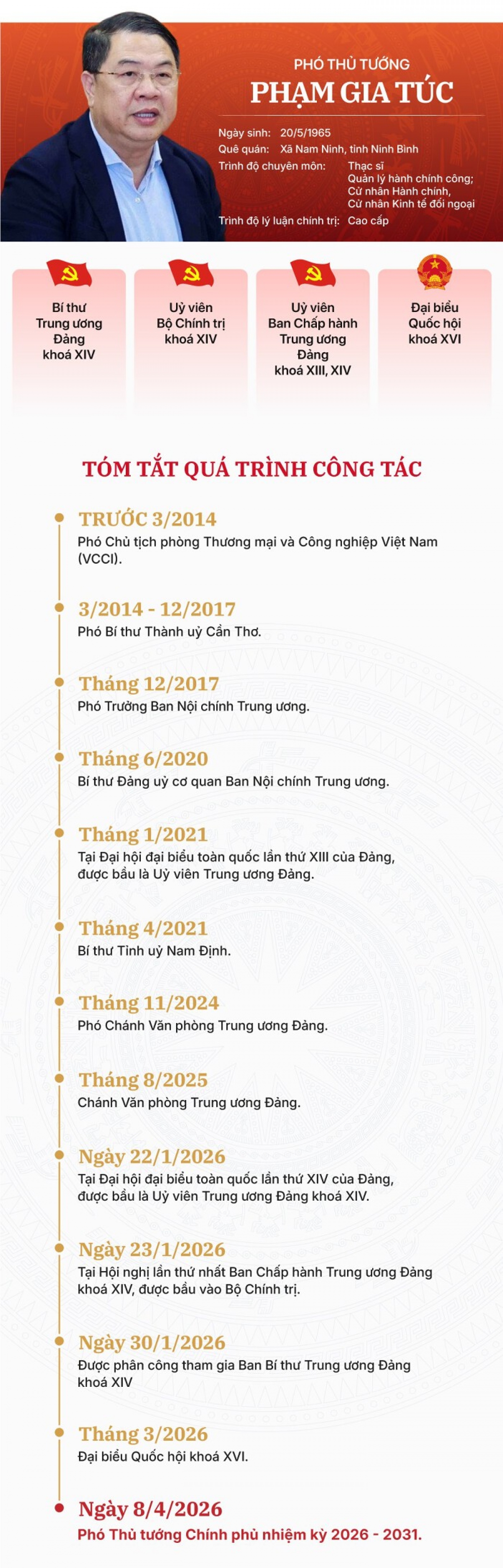 [VOVWORLD] - Ông Phạm Gia Túc, Chánh Văn phòng Trung ương Đảng vừa được phê chuẩn bổ nhiệm giữ chức vụ Phó Thủ tướng Chính phủ nhiệm kỳ 2026 - 2031.