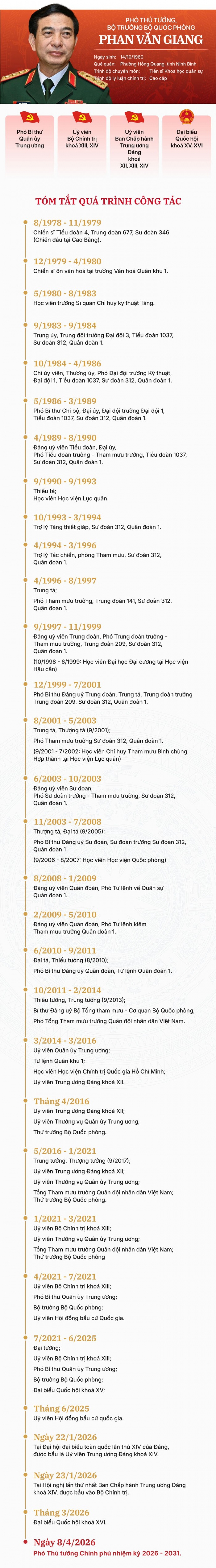 [VOVWORLD] - Sáng 8/4, trong chương trình Kỳ họp thứ Nhất, Quốc hội khoá XVI, Bộ trưởng Bộ Quốc phòng Phan Văn Giang đã được phê chuẩn giữ chức Phó Thủ tướng Chính phủ nhiệm kỳ 2026 - 2031.