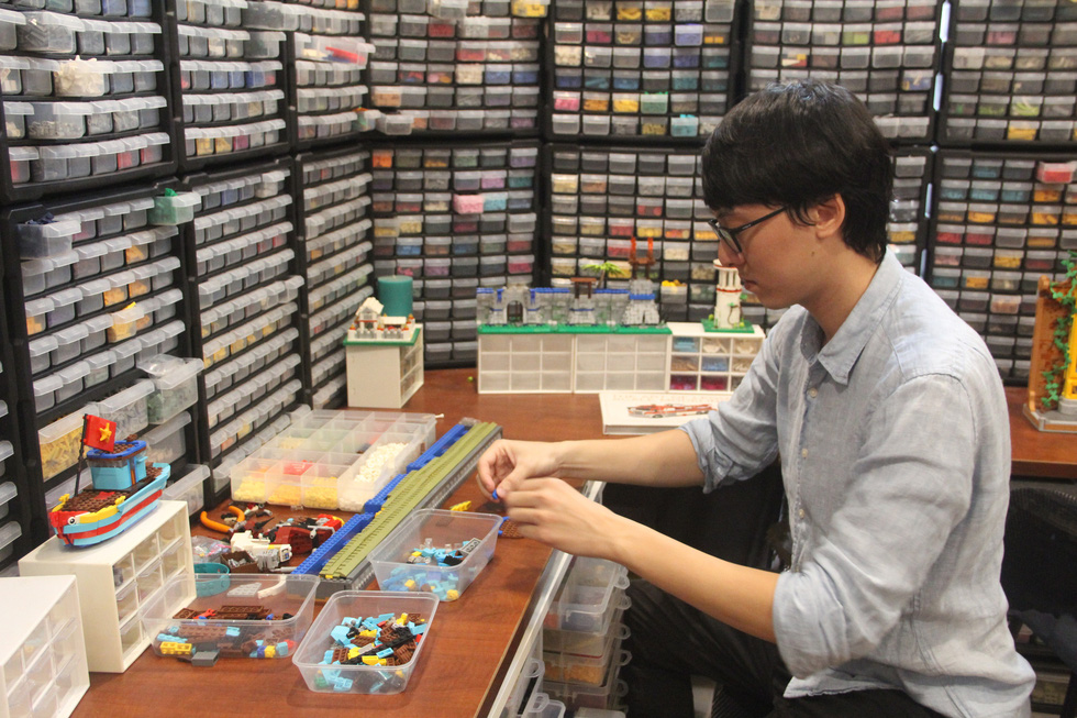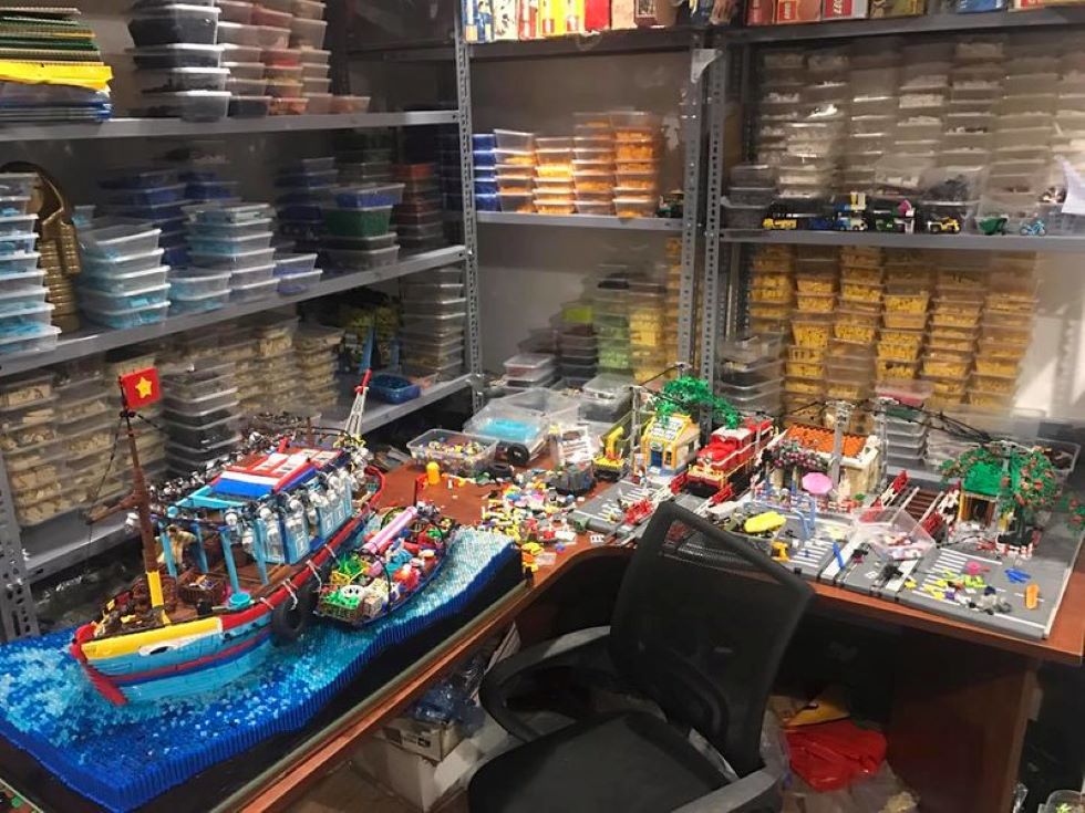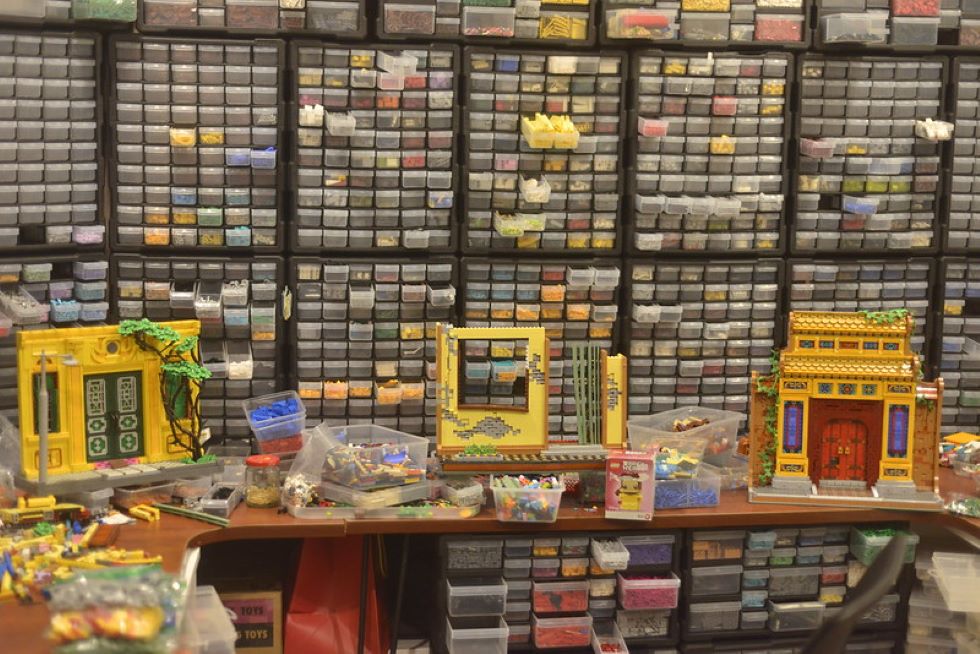 Căn phòng được xếp chật kín bằng những chiếc hộp, ngăn kéo và tủ đầy mảnh xếp lego từ sàn tới trần nhà.