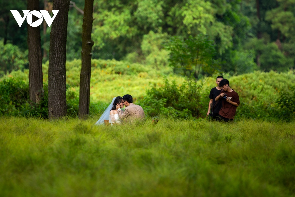 Khung cảnh mênh mông, thơ mộng của cánh đồng bãi rễ thời gian gần đây thu hút rất nhiều bạn trẻ tới thăm thú, chụp ảnh. Nhiều cặp đôi tìm đến để thực hiện những bộ ảnh cưới. |