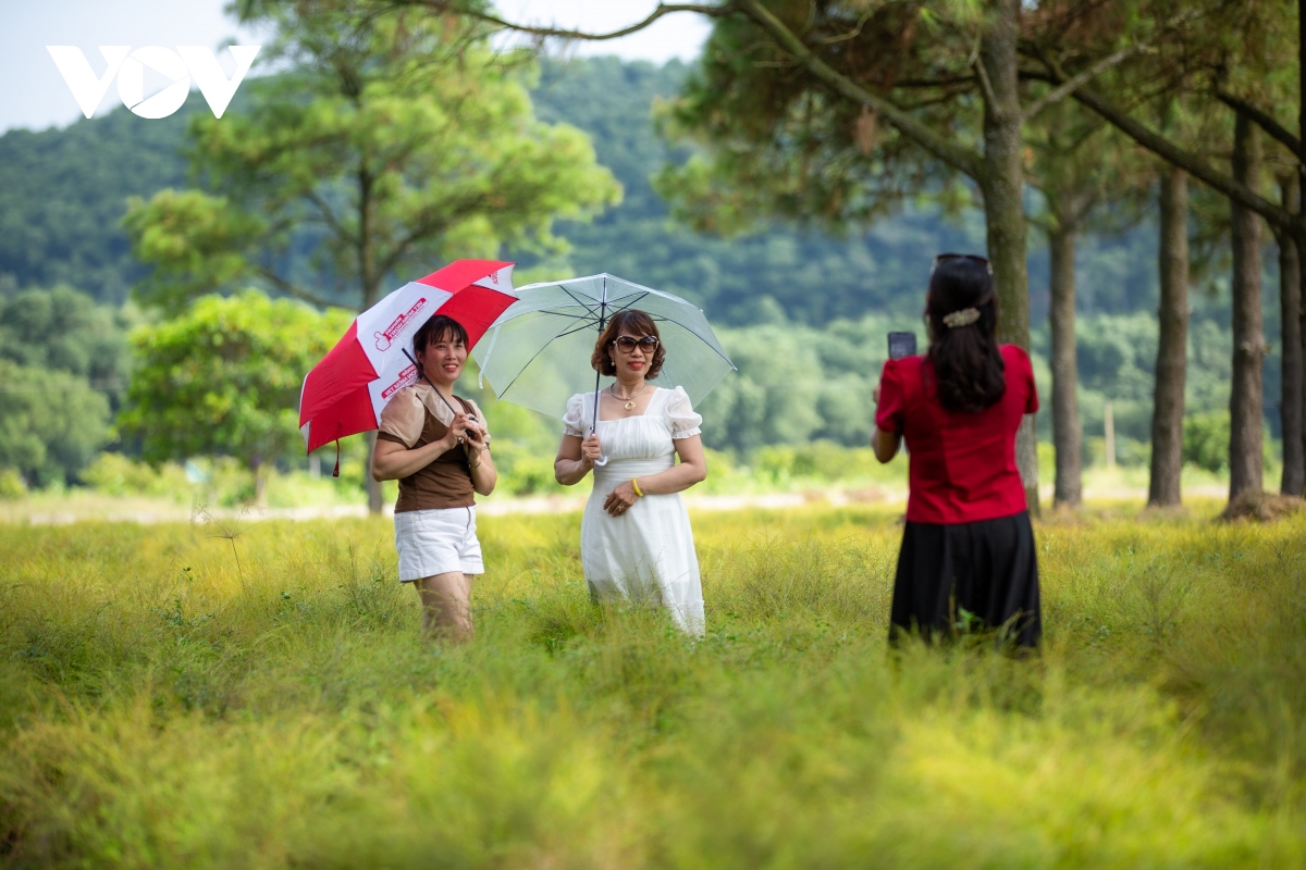 Chị Nguyễn Thị Phượng (Thái Nguyên) cho biết đợt nghỉ lễ 2/9 dài ngày được bạn bè mời ra Hải Dương chơi: “Ở đây tuy k có nhiều dịch vụ nhưng không khí rất mát mẻ, cảnh quan thiên nhiên hoang sơ rất đẹp. Chỗ tôi cũng có cây này nhưng phần lớn là tự mọc rải rác ở trên núi, tôi không nghĩ là khi được trồng thành cả một cánh đồng thì lại đẹp thế này". |