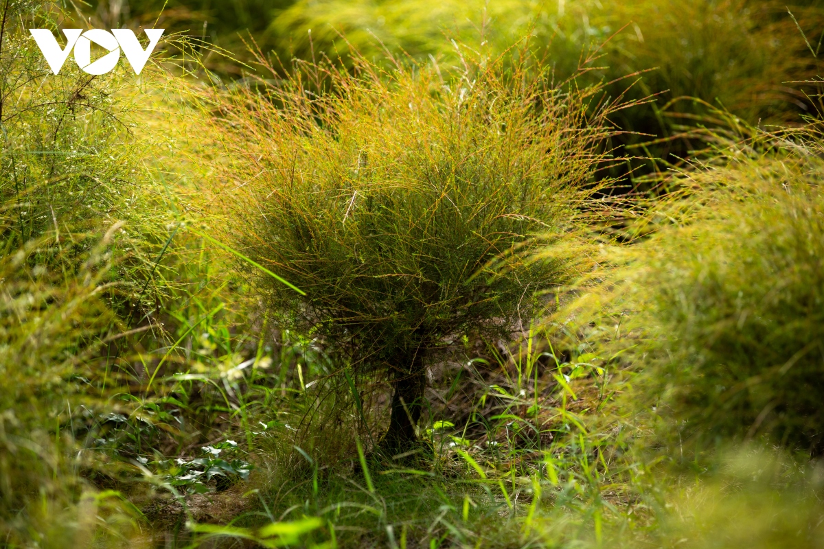 Cây rễ có mùi hương thơm rất đặc trưng, dịu quyện vào trong gió. Bao quanh vẻ đẹp xanh mướt của bãi rễ là rừng thông, xa xa có những dãy núi... Tất cả tạo nên một bức tranh thiên nhiên tuyệt đẹp. |