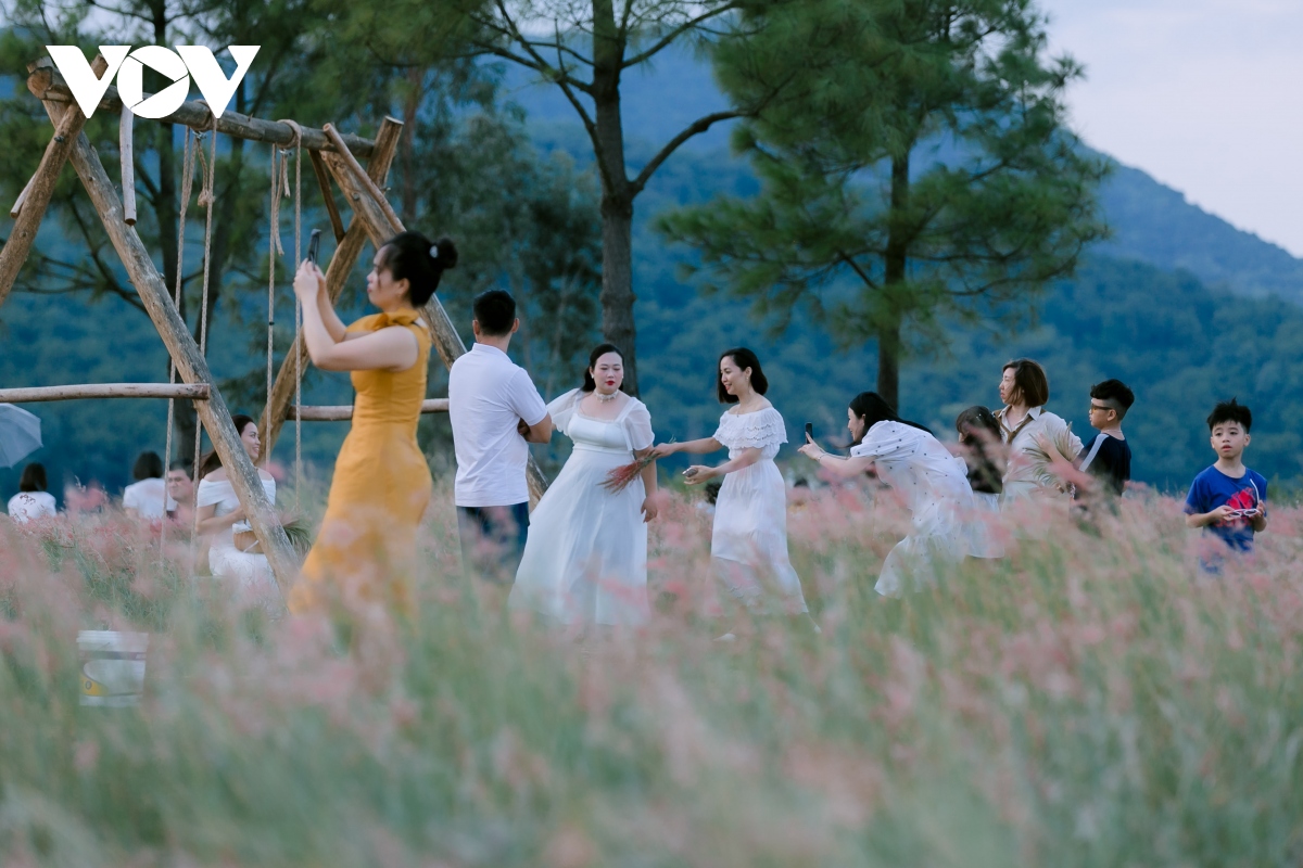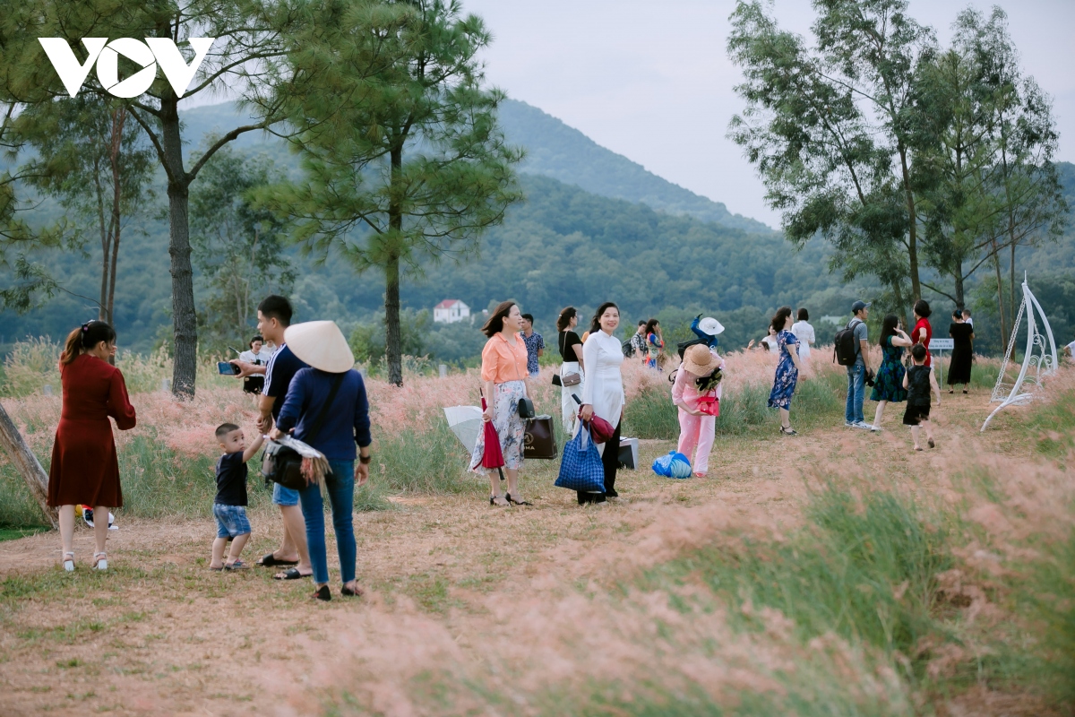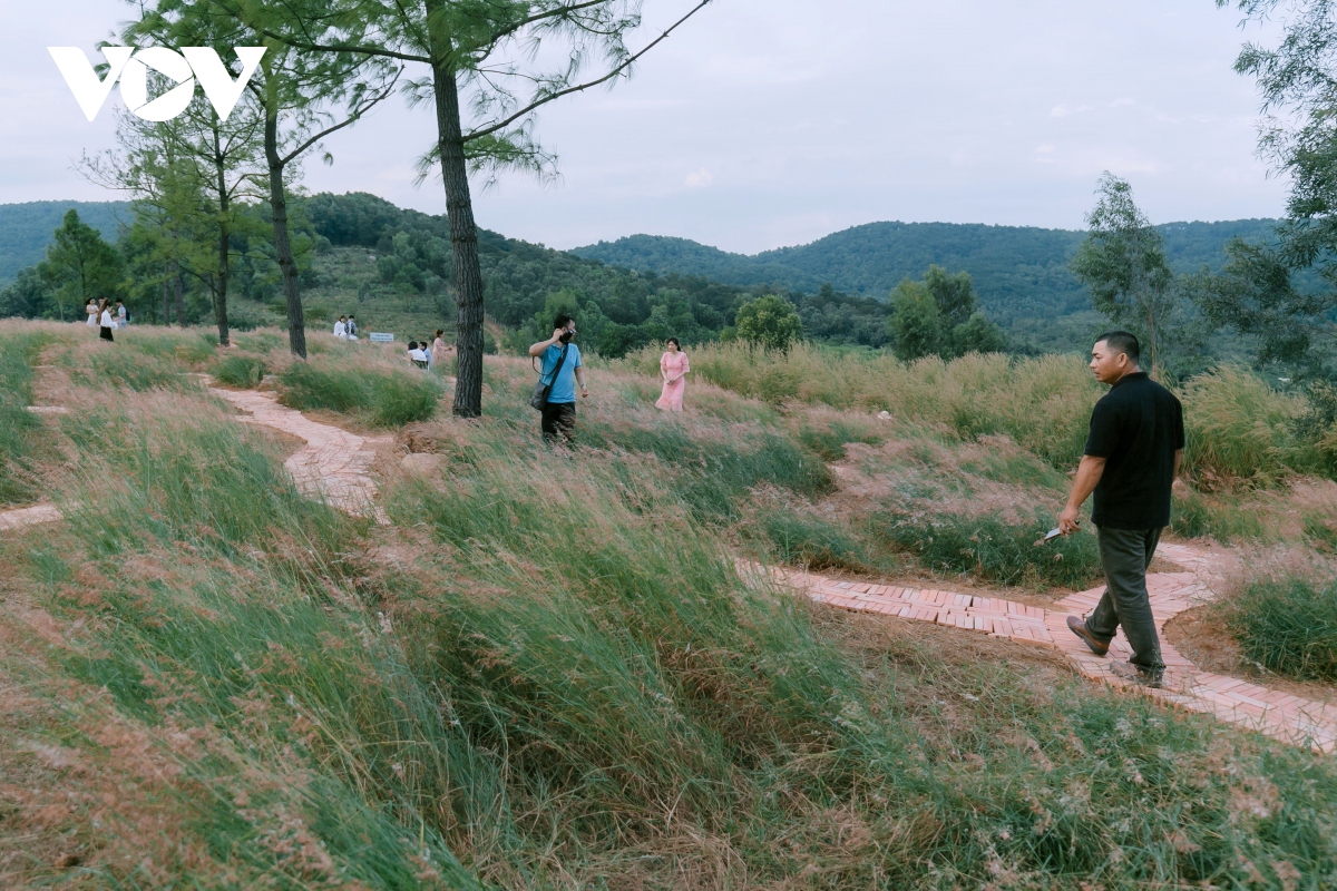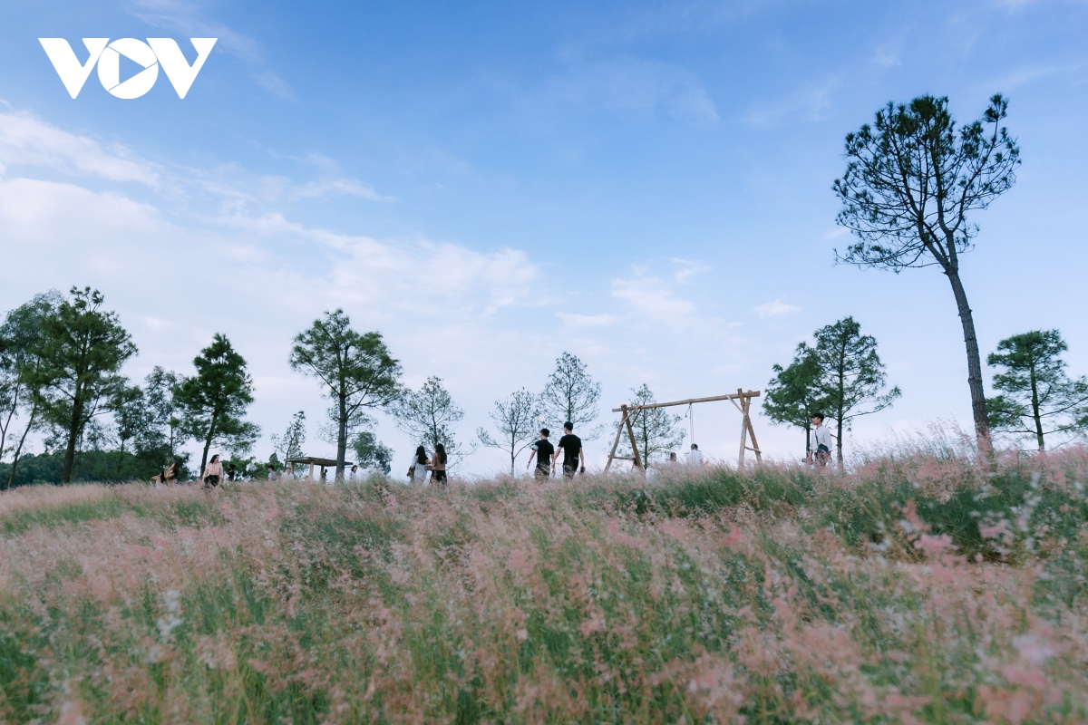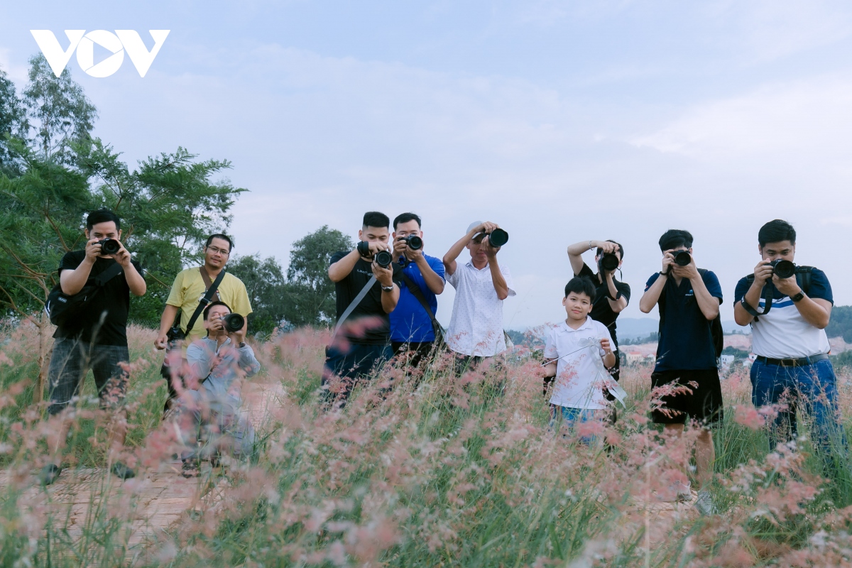 Đồi cỏ phát triển tốt, khi ra bông, hoa cỏ lại có màu phớt hồng rất đẹp đã thu hút rất nhiều du khách ở khắp nơi tìm đến chụp ảnh.