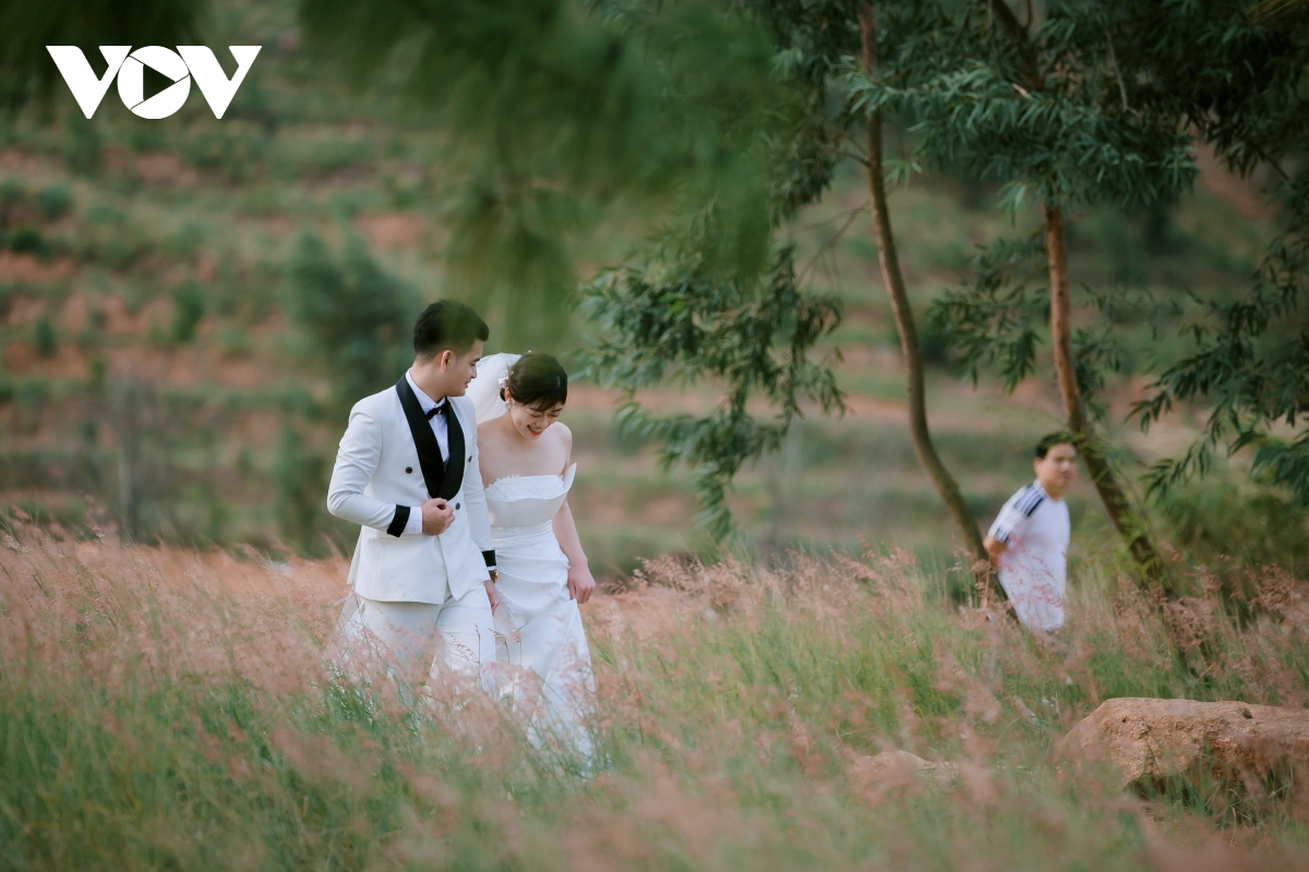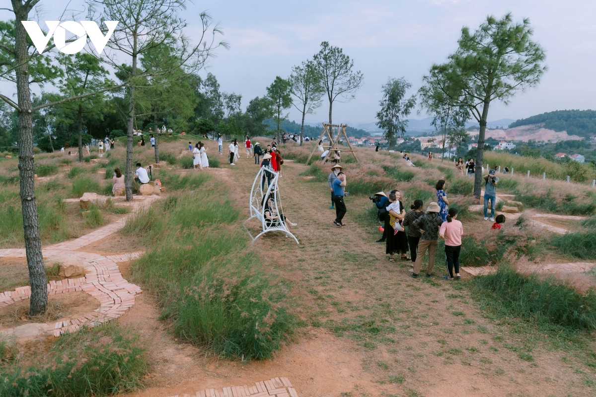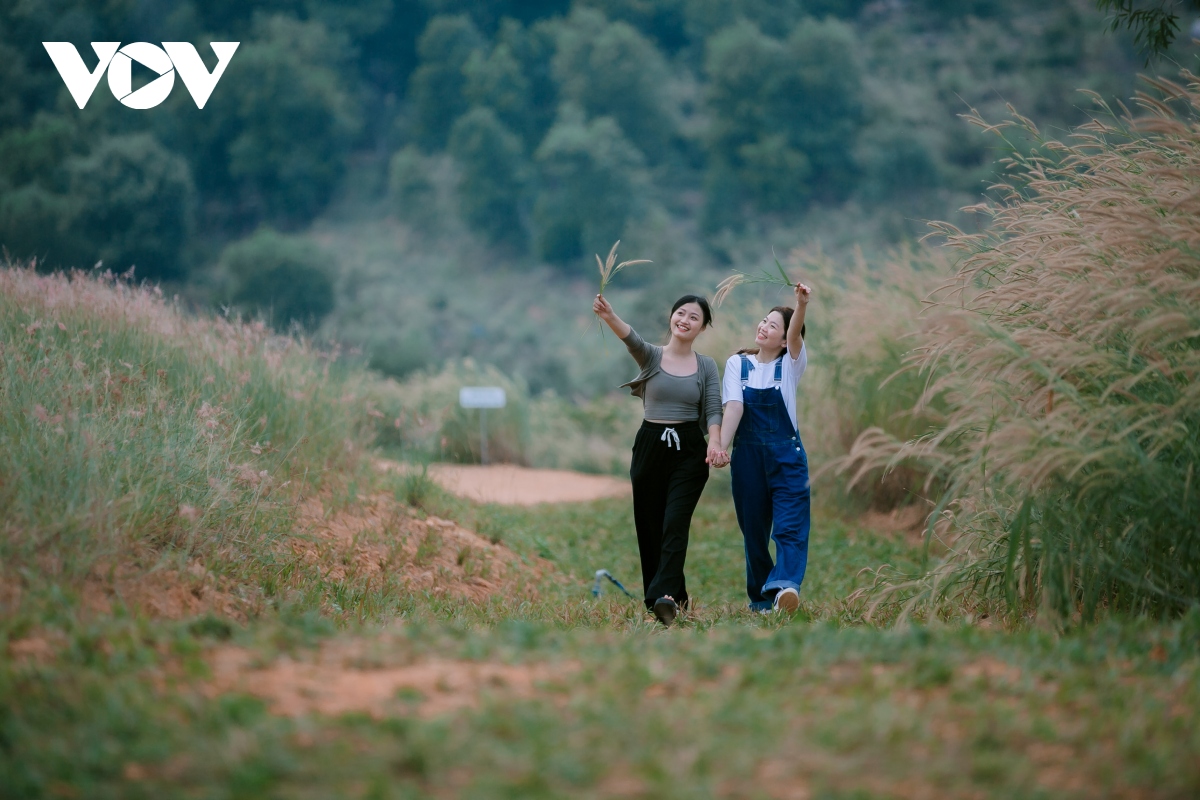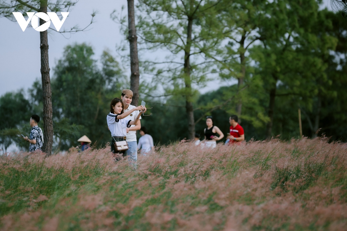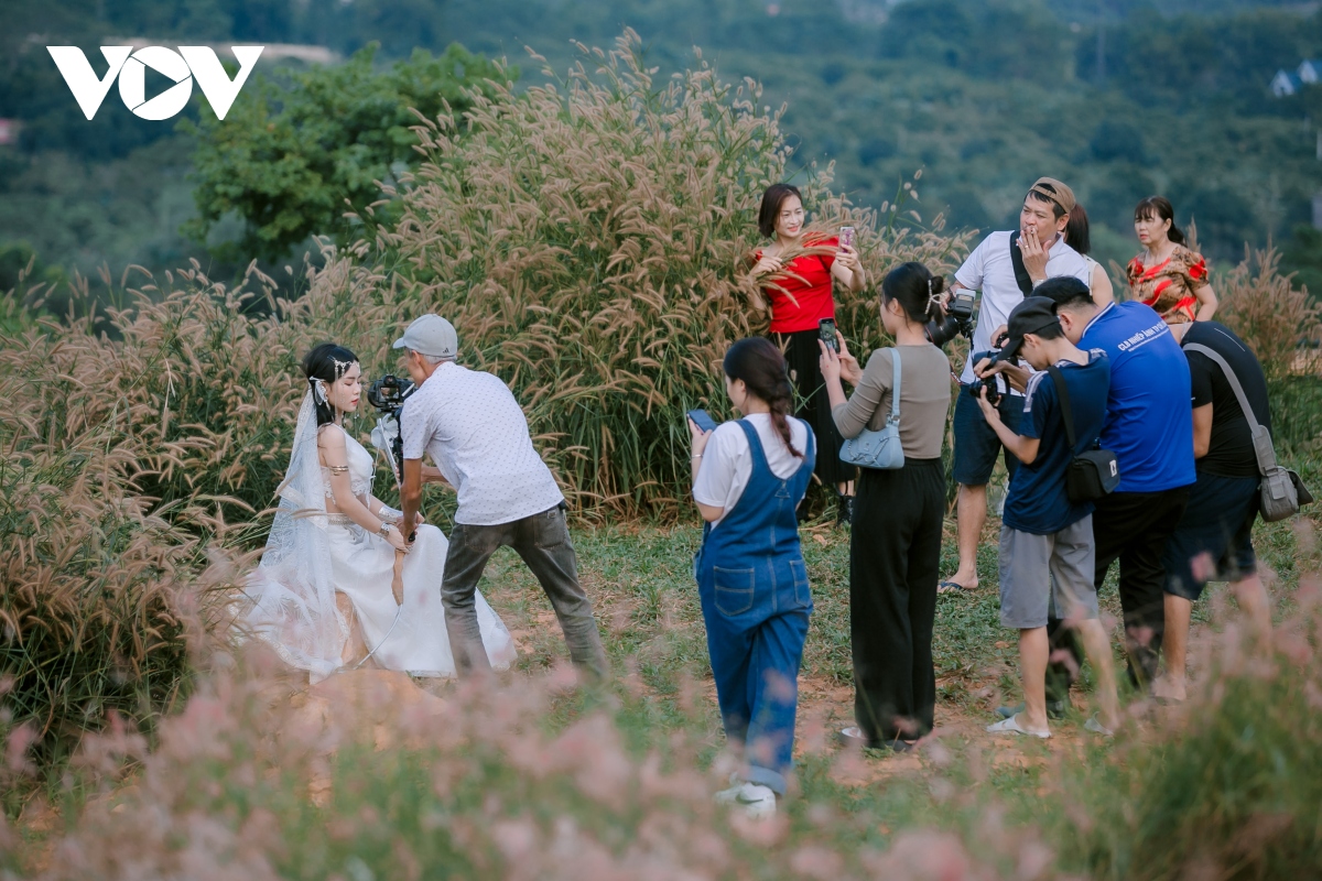 Đồi cỏ phát triển tốt, khi ra bông, hoa cỏ lại có màu phớt hồng rất đẹp đã thu hút rất nhiều du khách ở khắp nơi tìm đến chụp ảnh.