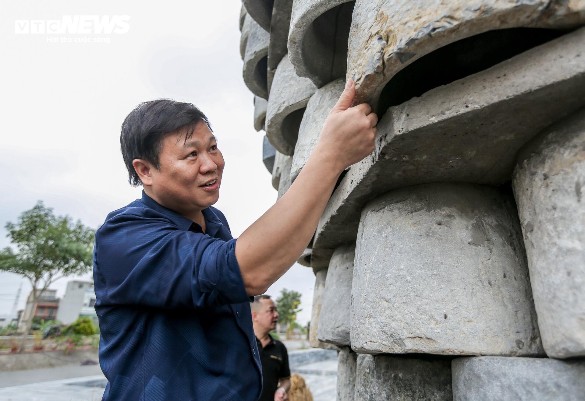 Theo kiến trúc sư Nguyễn Sánh - một nghệ nhân nổi tiếng trong việc khảo cứu, phục dựng các không gian văn hoá xưa cũ, việc xếp những chiếc cối đá nặng nề thành tháp Thần Nông được lấy ý tưởng từ vị thần của nền nông nghiệp lúa nước. “Việc xây dựng tháp bằng cối đá là thách thức rất lớn trong quá trình thi công. Đơn vị thi công phải lựa chọn những cối đá có kích thước tương tự nhau và vận chuyển lên cao. Đặc biệt, những cối đá này ở ngoài rất hiếm nên phải chờ thời gian sưu tầm, hoàn thiện nên phải mất khoảng hơn 2 năm hoàn thành”, kiến trúc sư nói. |
