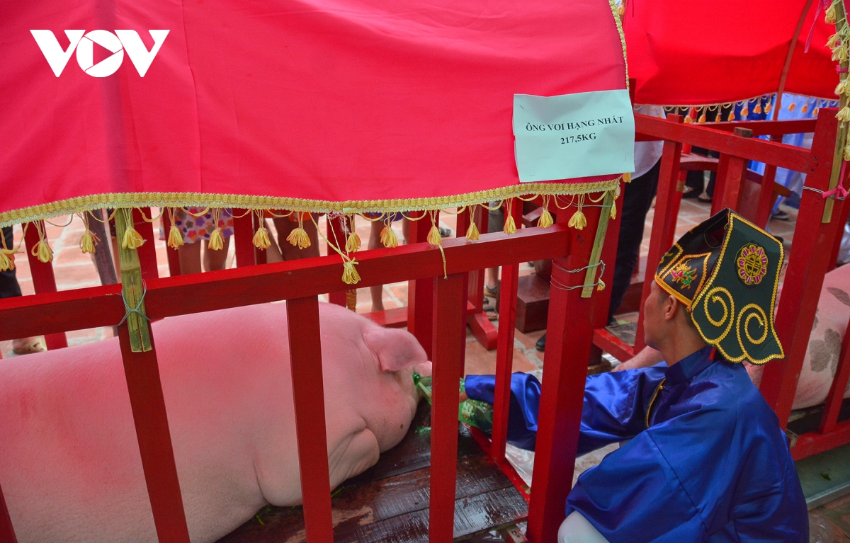 Điểm độc đáo nhất của lễ hội phải kể đến tục thi lợn to gọi là “Ông Voi”. Mỗi năm làng chọn ra 12 ông “cai đám” khỏe mạnh, biết làm ăn, đạo đức tốt, gia đình thuận hòa để chăm sóc Ông Voi. Tới lễ hội, Ông Voi được đưa ra đình chầu thần và chấm thi dựa trên cân nặng, hình thể. Năm 2019, lễ hội được ghi vào danh mục Di sản văn hoá phi vật thể quốc gia.