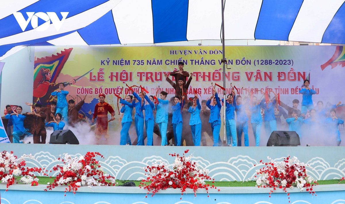 Vân Đồn cũng giữ vị trí chiến lược về quốc phòng – an ninh và ghi dấu nhiều chiến công hiển hách của cha ông nơi cửa biển: Tướng Trần Khánh Dư diệt đoàn thuyền lương của tướng giặc Nguyên Mông Trương Văn Hổ, buộc đại quân giặc phải rút lui và bị tiêu diệt ở sông Bạch Đằng (1288). Hiện nay, người dân tại đây vẫn lưu giữ các truyền thống, nổi bật là lễ hội đình Quan Lạn, tái hiện chiến thắng lịch sử với tục đua thuyền trên biển độc đáo. Ảnh: Lễ hội kỷ niệm 735 năm chiến thắng Vân Đồn