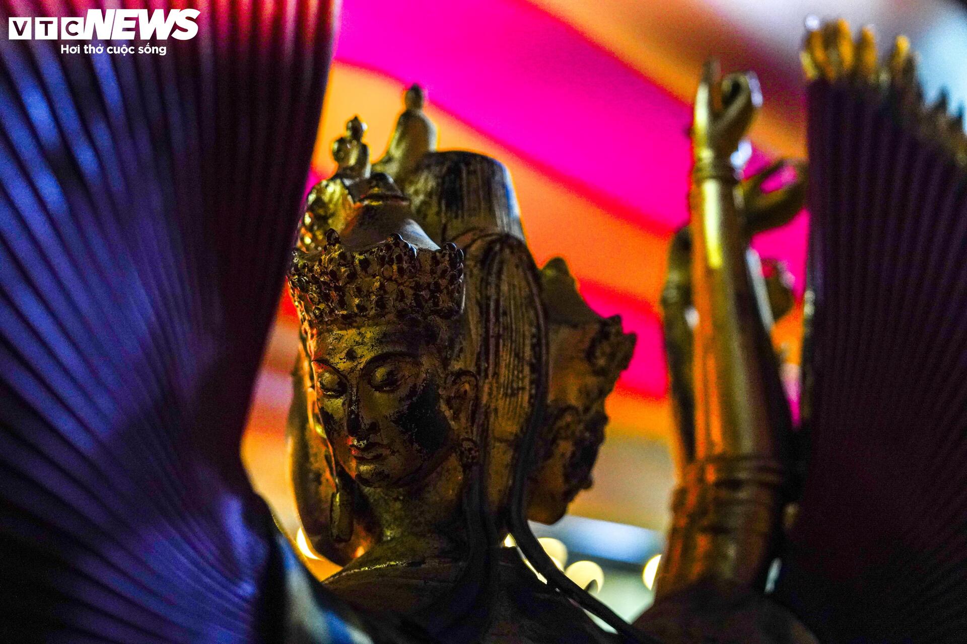 | Nổi bật tại không gian trưng bày là sự xuất hiện của 87 bảo vật quốc gia – những hiện vật quý giá phản ánh chiều sâu lịch sử và sự lan tỏa mạnh mẽ của Phật giáo trong đời sống văn hóa, tâm linh của người Việt. |