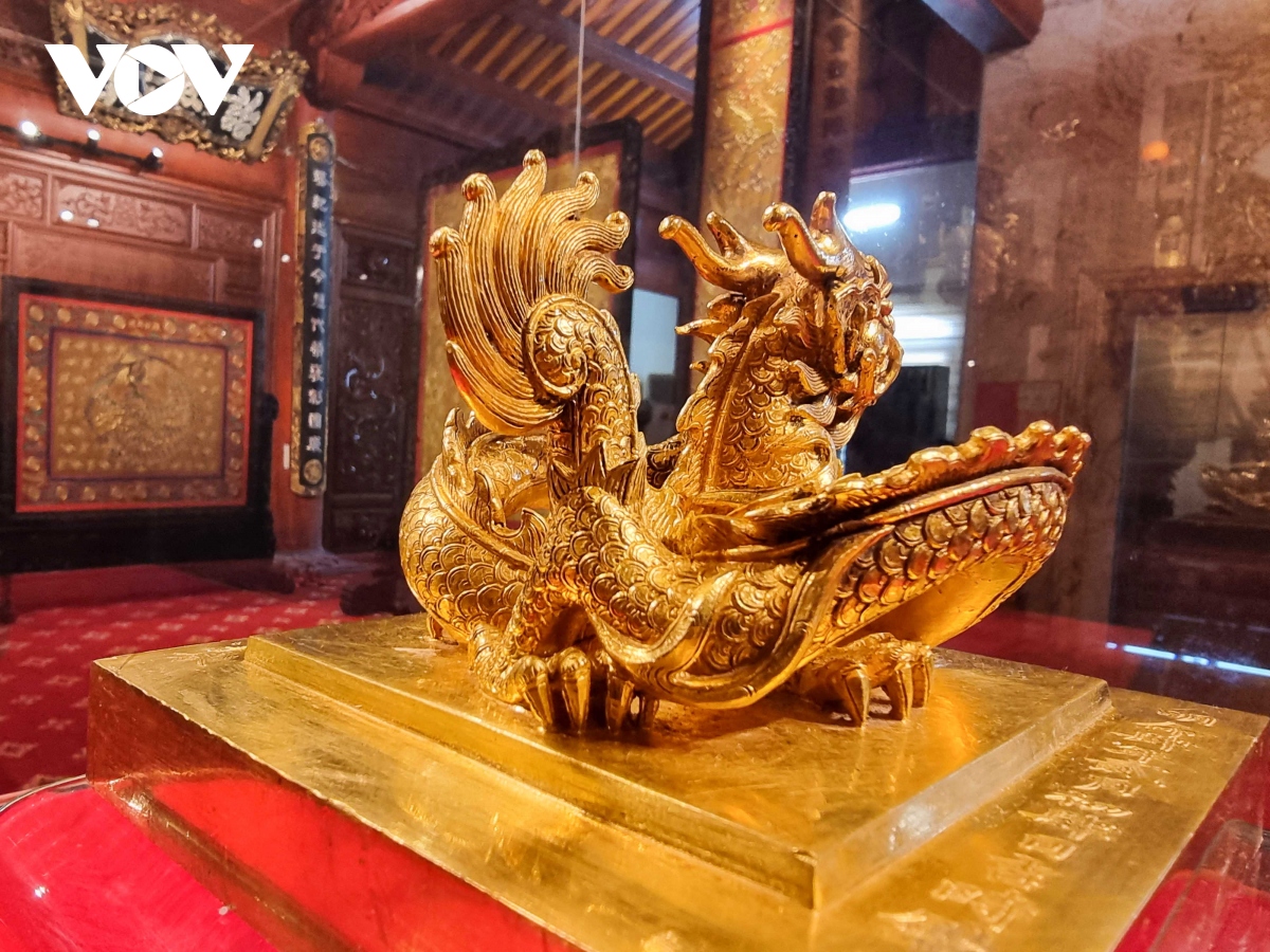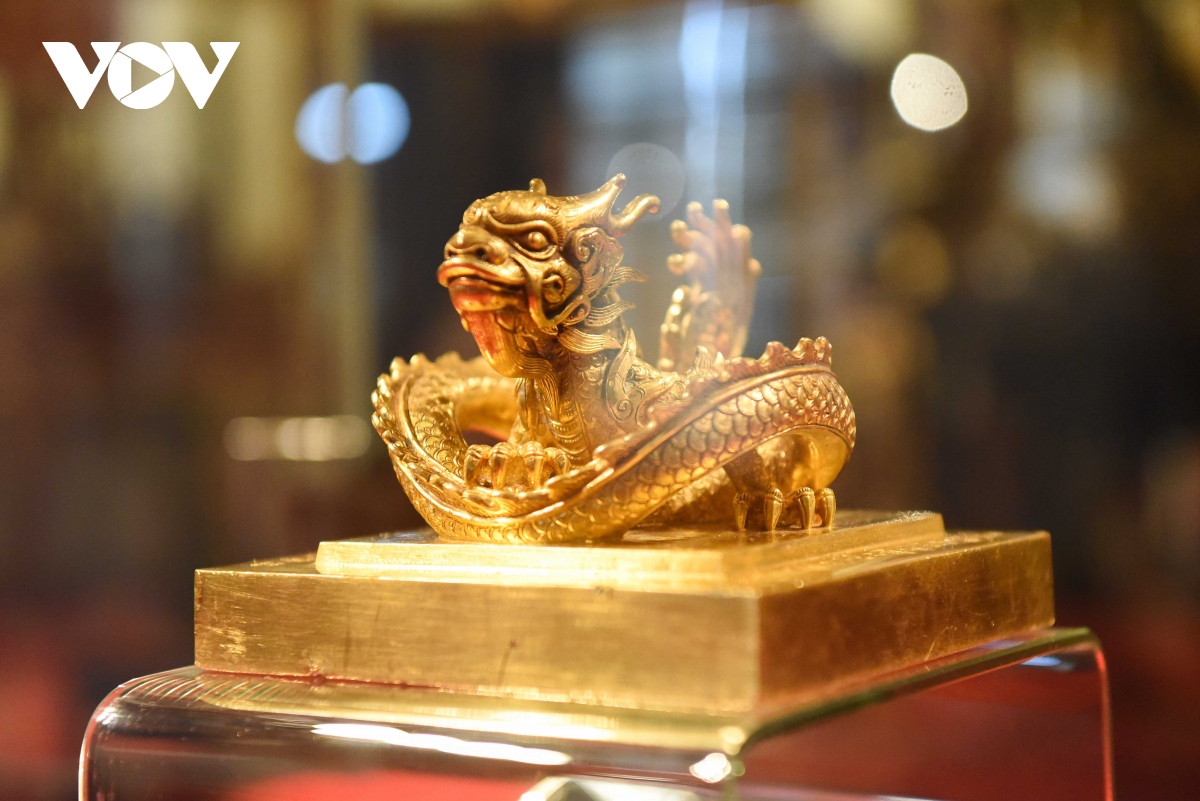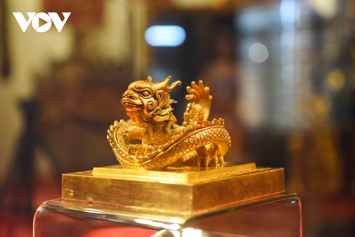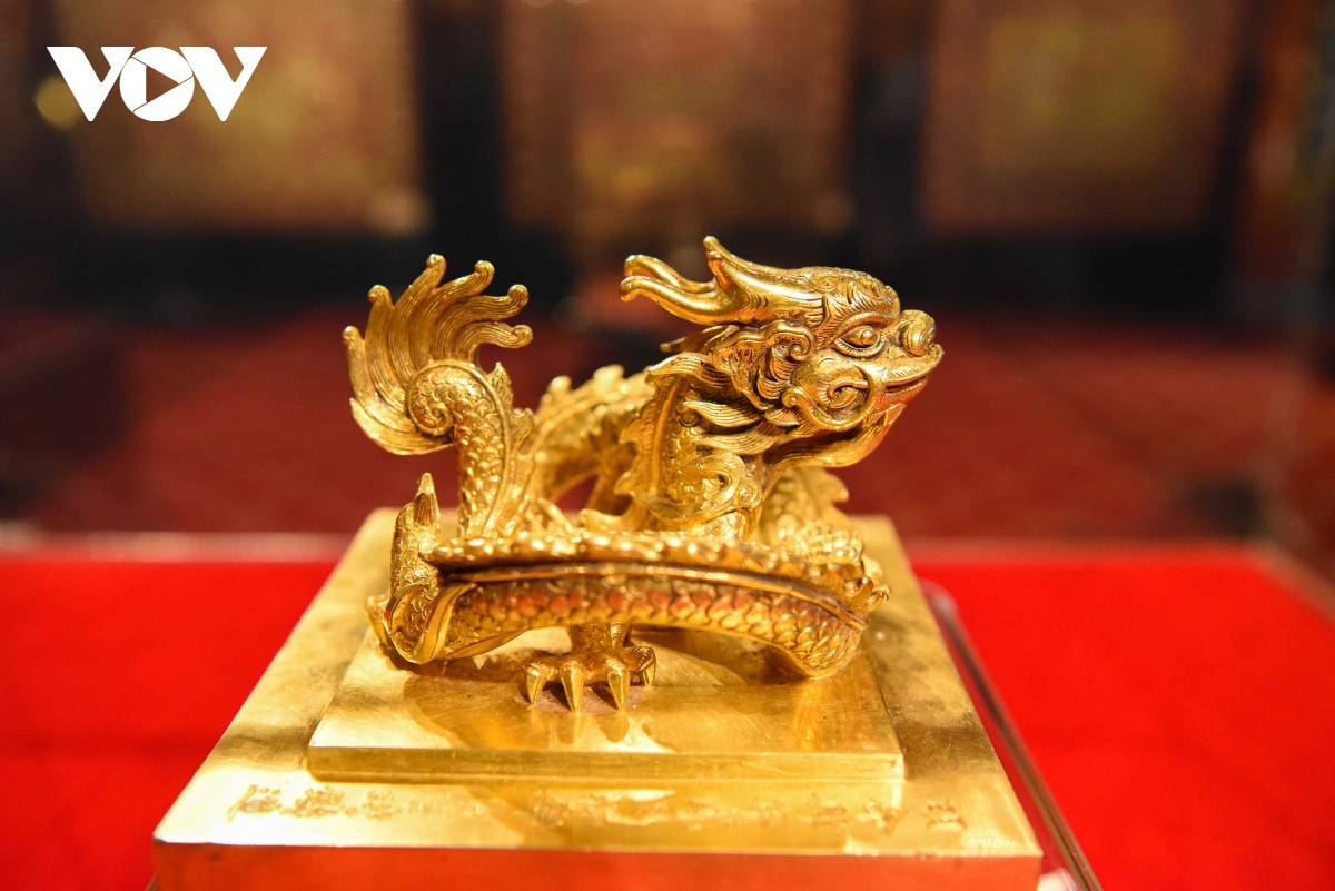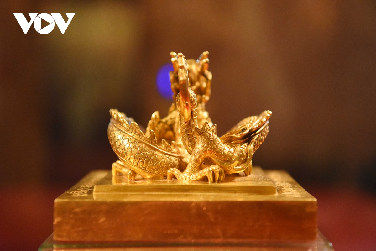 Ấn vàng " Hoàng đế chi bảo" được chạm khắc tinh xảo, là đỉnh cao của nghệ thuật chạm khắc. |