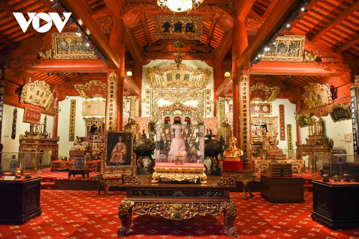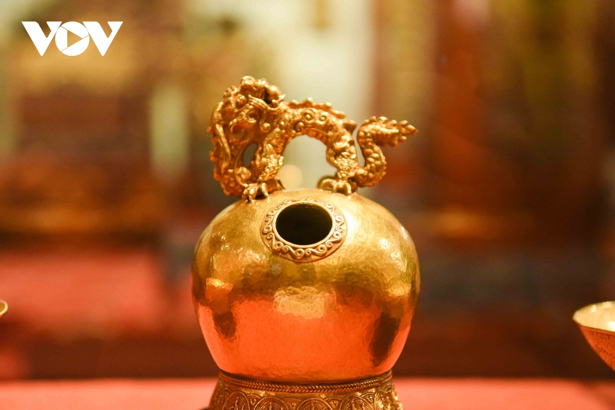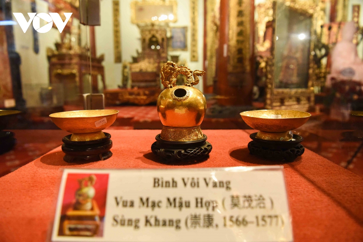 Tại Bảo tàng Hoàng gia Nam Hồng còn trưng bày nhiều cổ vật như Bình vôi vàng thời vua Mạc Mậu Hợp thời kỳ Sùng Khang năm 1566 - 1577. |