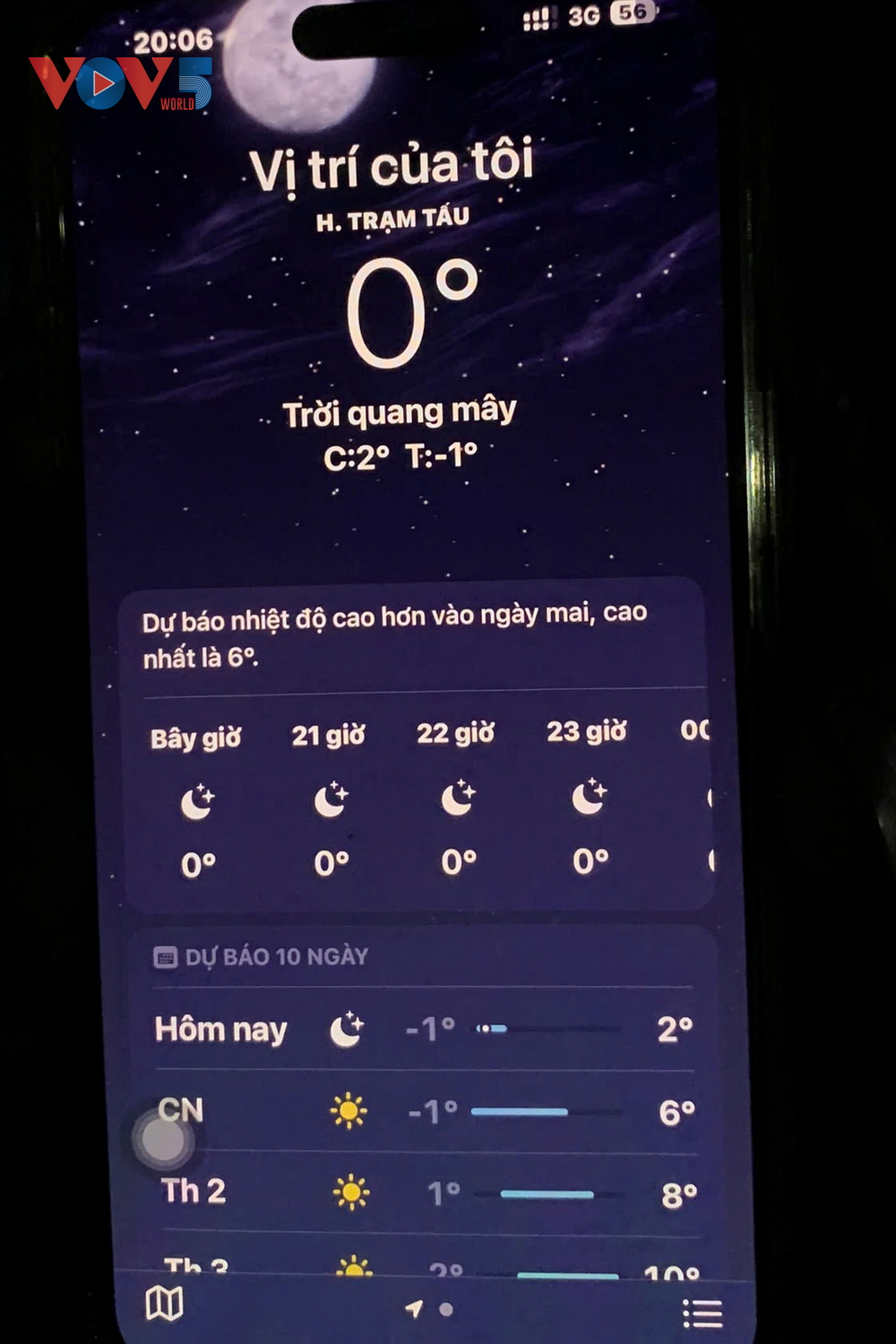 | Tới 8 giờ tối, nhiệt độ khu vực Trạm Tấu đã xuống tới 0 độ. |