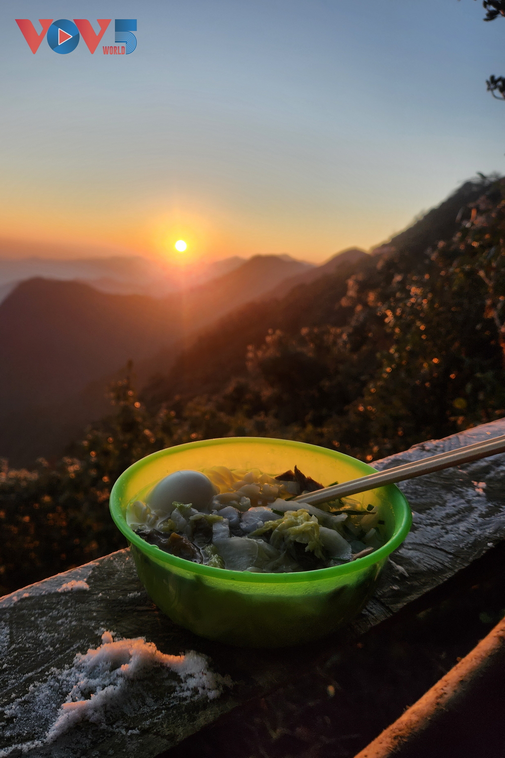 | Bữa sáng với "chiếc view triệu đô" để nạp năng lượng tiếp tục chinh phục đỉnh Tà Xùa trong cái lạnh 0 độ. |