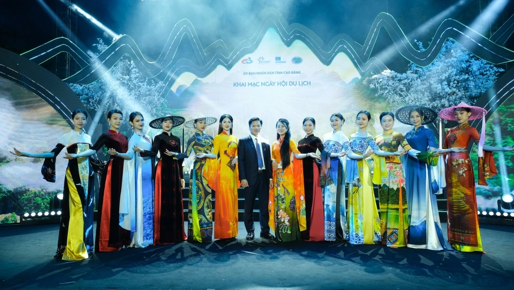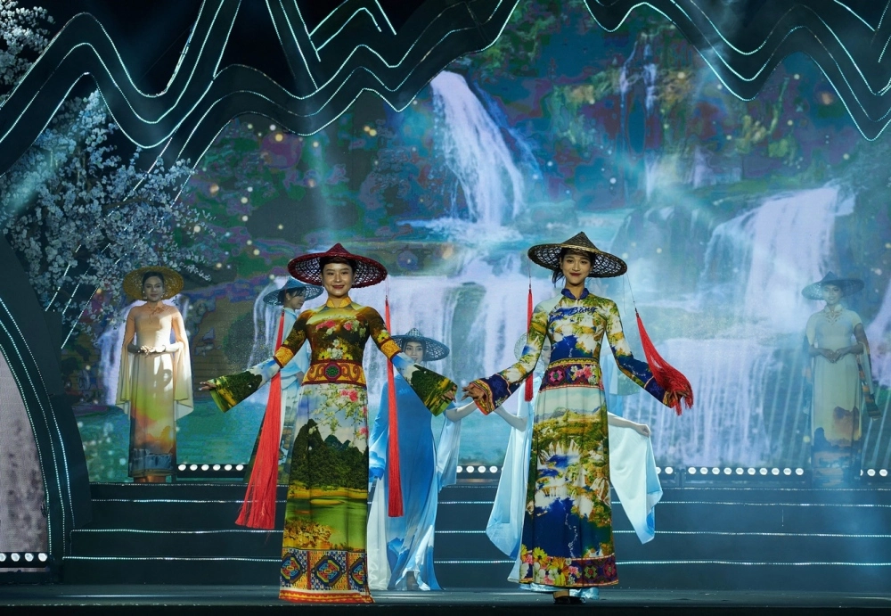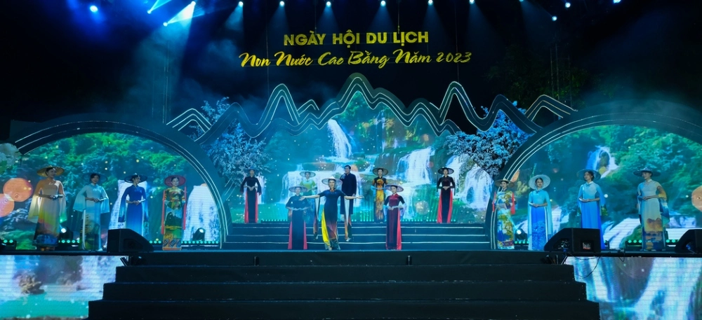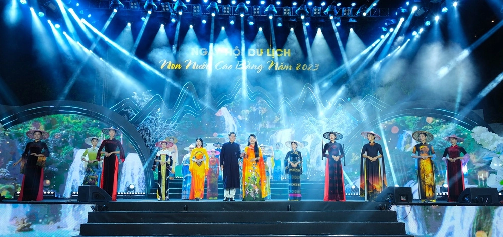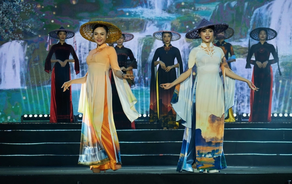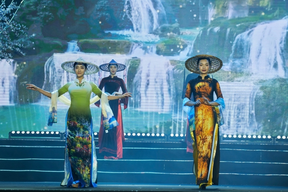 Một số hình ảnh phần trình diễn áo dài trong "Ngày hội du lịch - Non nước Cao Bằng 2023".