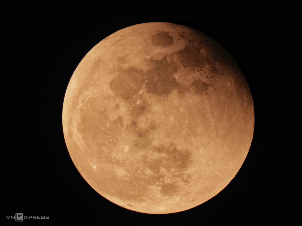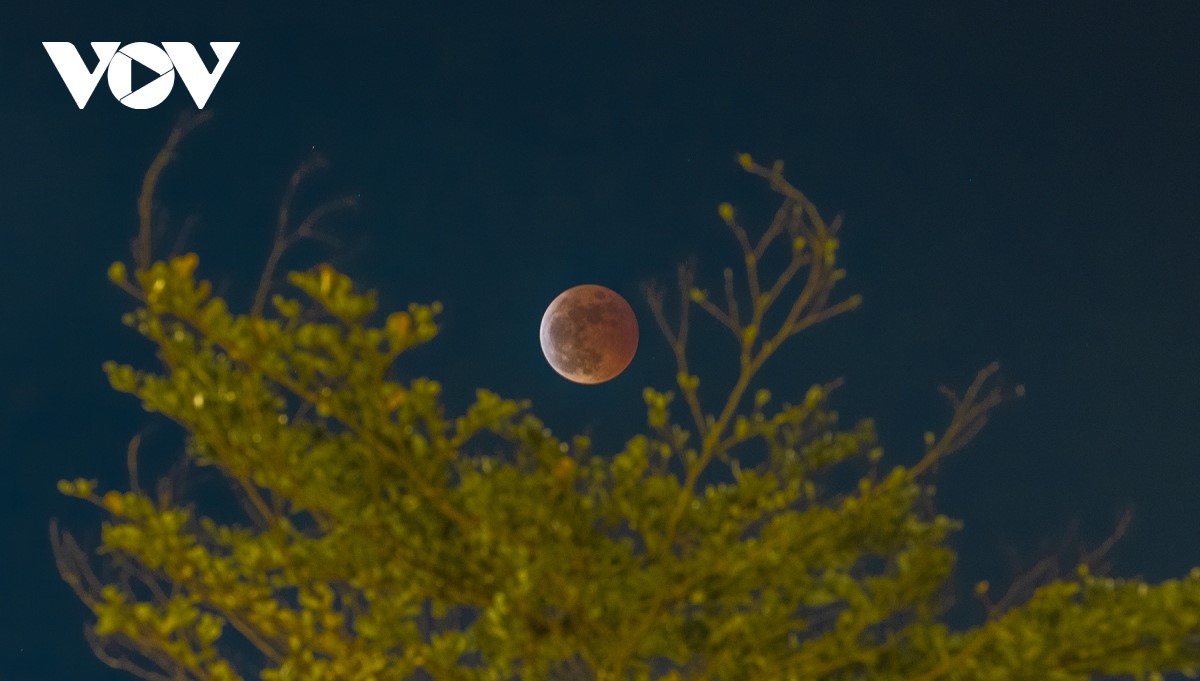 Khoảng 20h, mặt trăng lên cao và là lúc người dân có thể quan sát rõ bằng mắt thường. Ảnh: VOV |