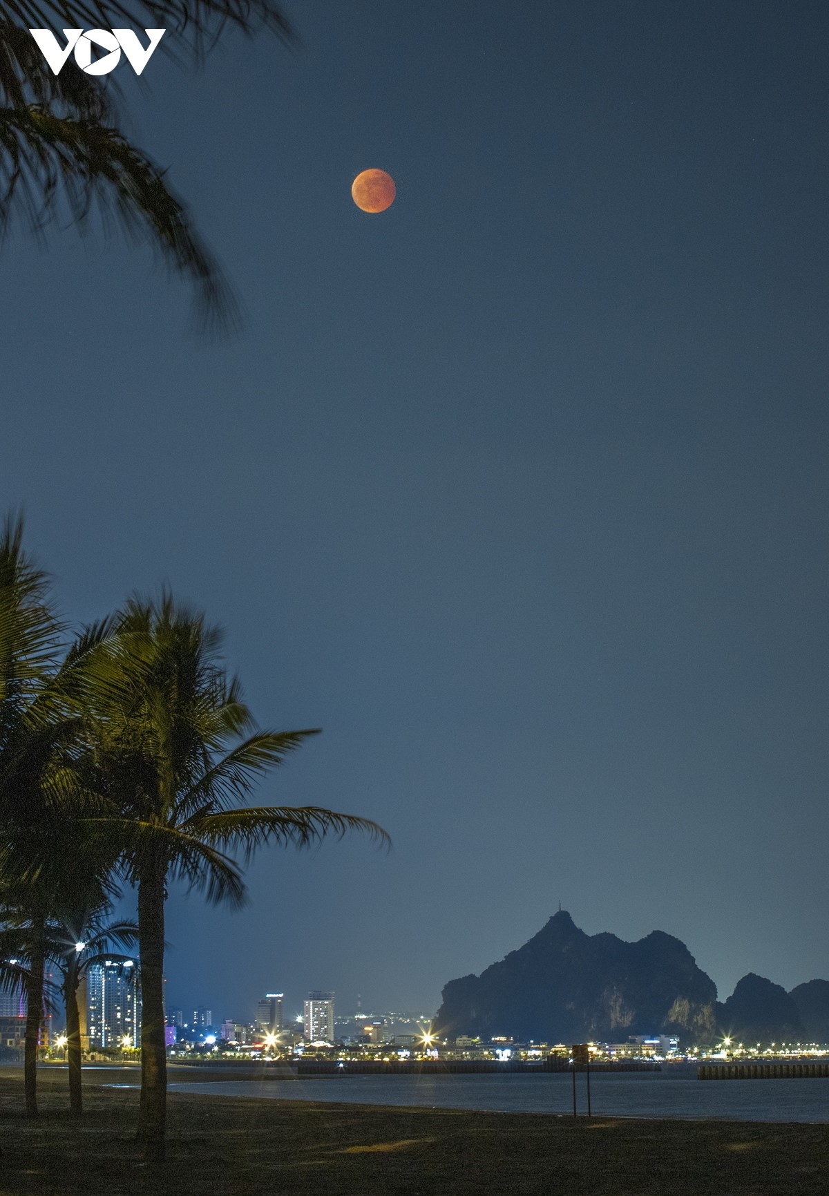 “Trăng máu hải ly” huyền ảo trên bầu trời Hạ Long, Quảng Ninh. Ảnh: VOV |