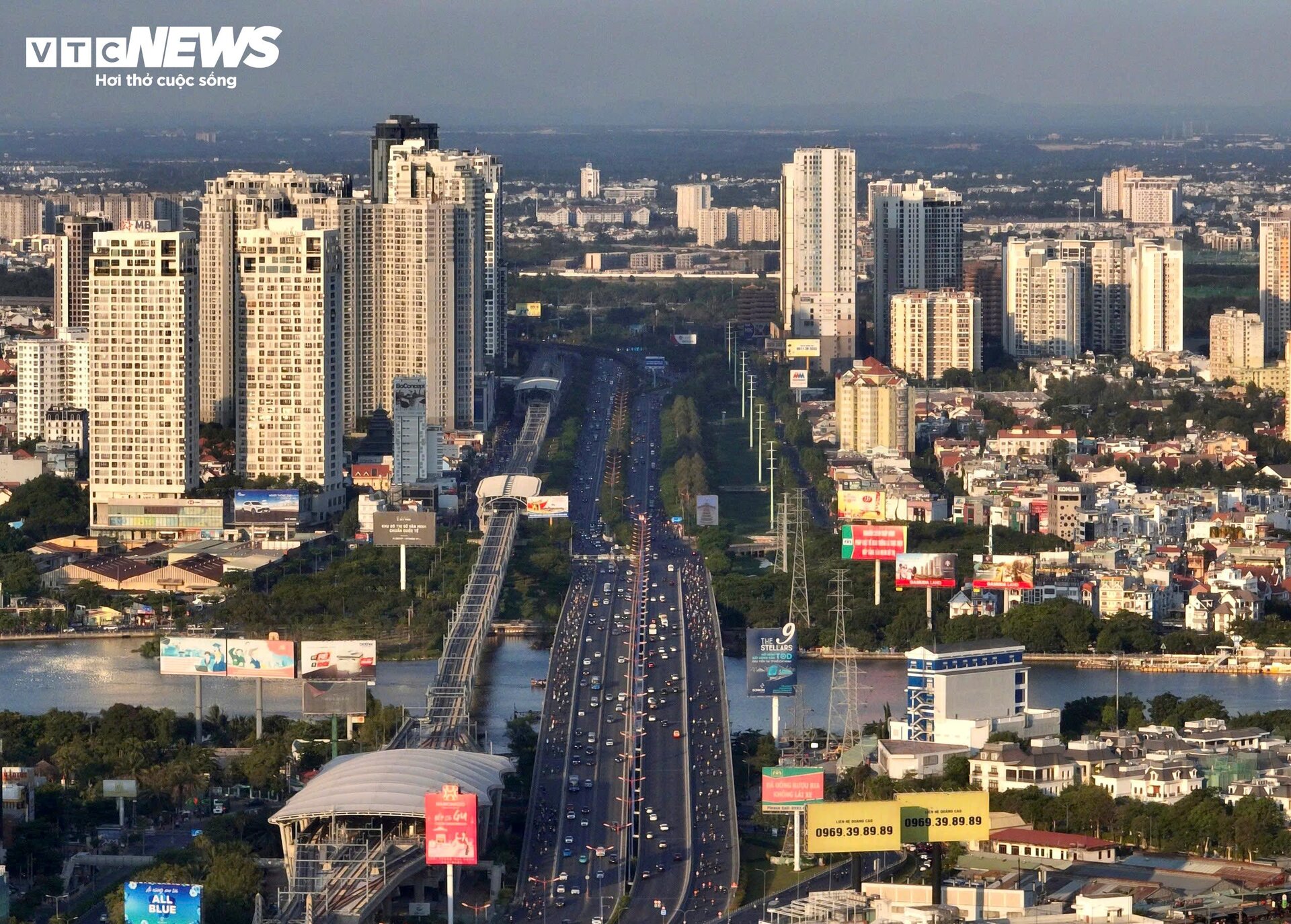 | Đường Điện Biên Phủ (quận Bình Thạnh) "thay da đổi thịt" từng ngày. Không chỉ ấn tượng với 12 làn xe, nhiều tòa nhà "ôm" quanh, tuyến đường ngày trở nên đặc biệt hơn khi tuyến metro số 1 chạy vắt qua. |