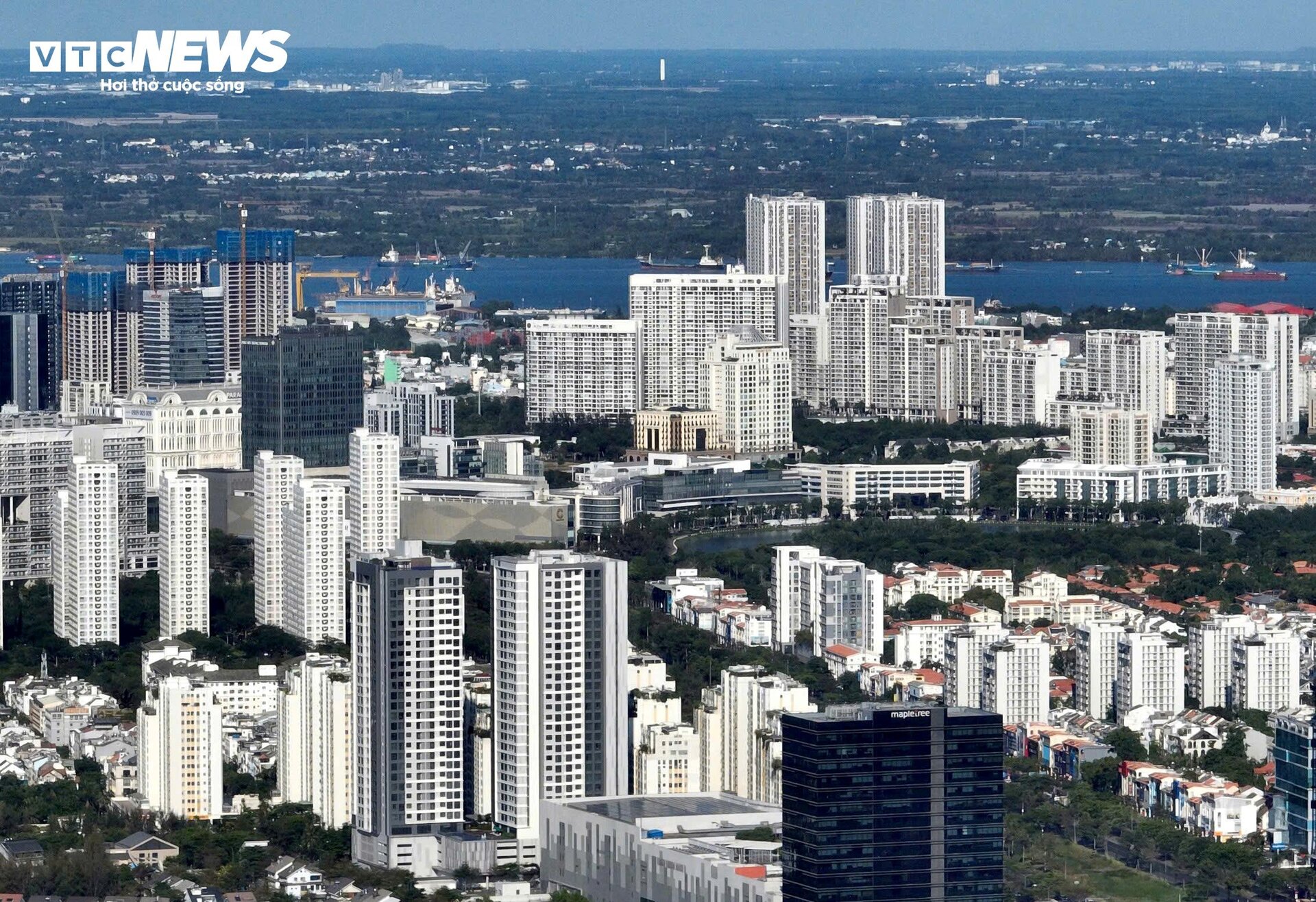 | Toạ lạc bờ Đông Sông Sài Gòn, khu đô thị mới Thủ Thiêm hiện đang đã mọc lên nhiều toà nhà cao tầng và cũng được coi là biểu tượng phát triển mới của TP.HCM. |