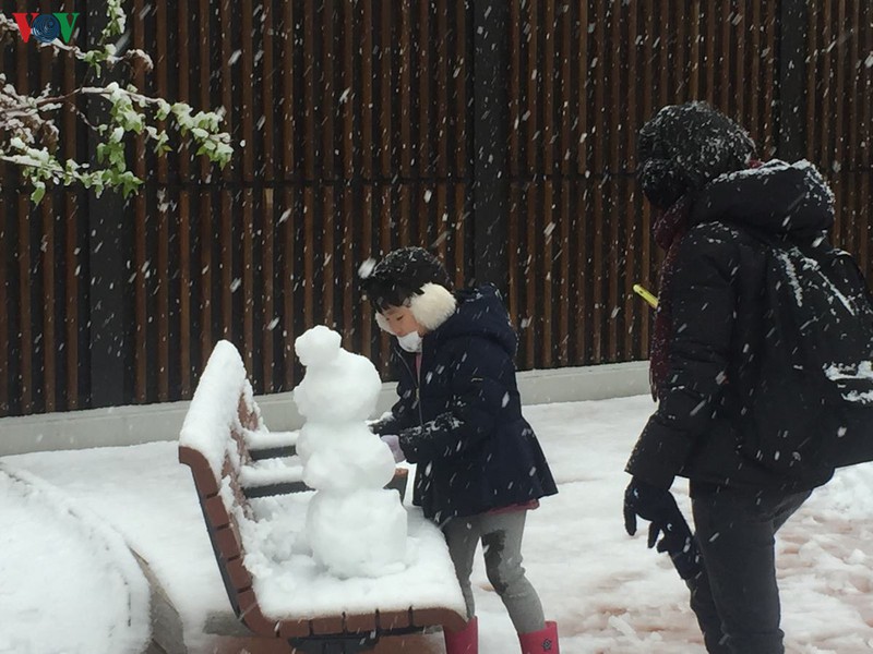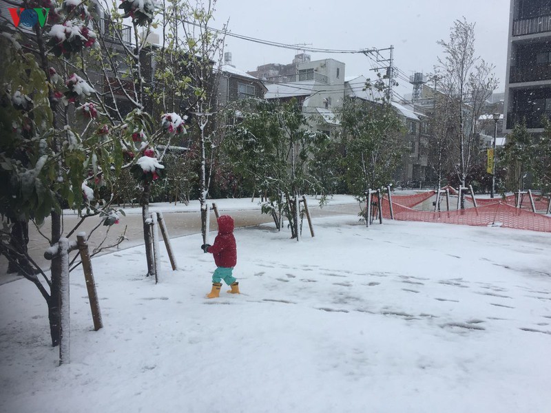 Nhiệt độ ngoài trời khoảng 1 độ C. Tuyết rơi dày, có nơi lên tới 30-40 cm, riêng Tokyo khoảng 10-30cm.