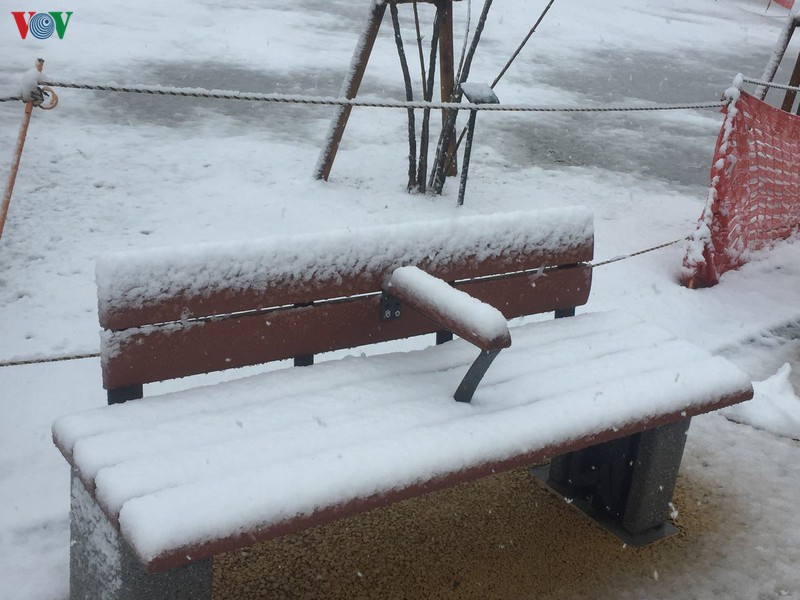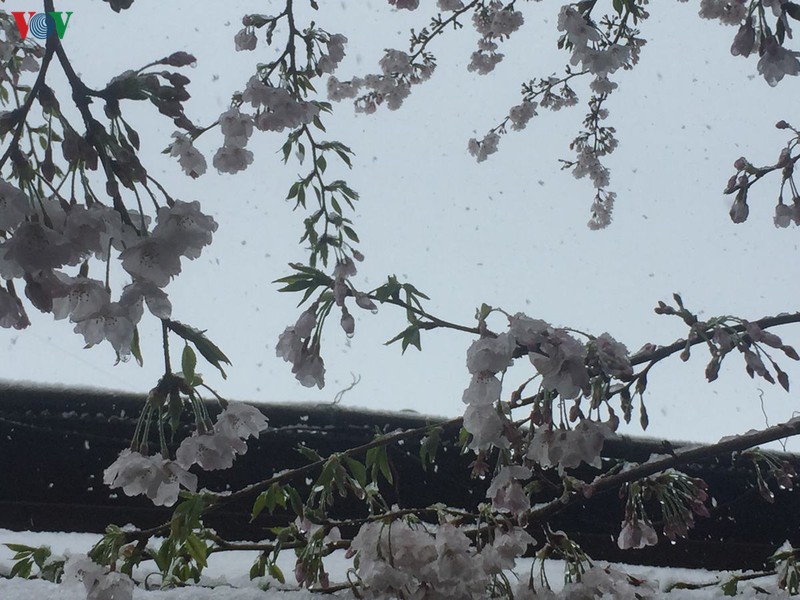 Tuyết phủ kín cả những đóa hoa anh đào.
