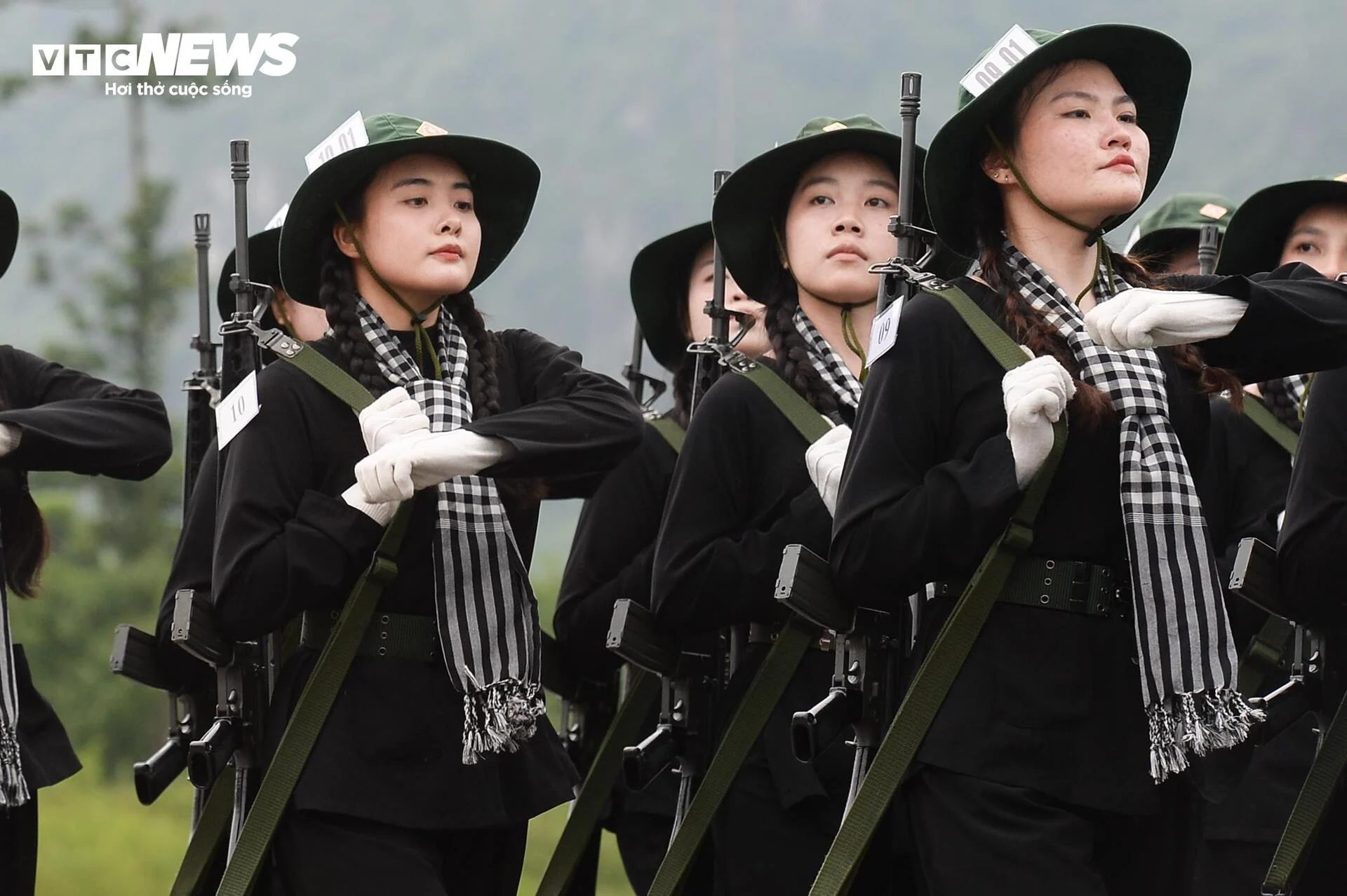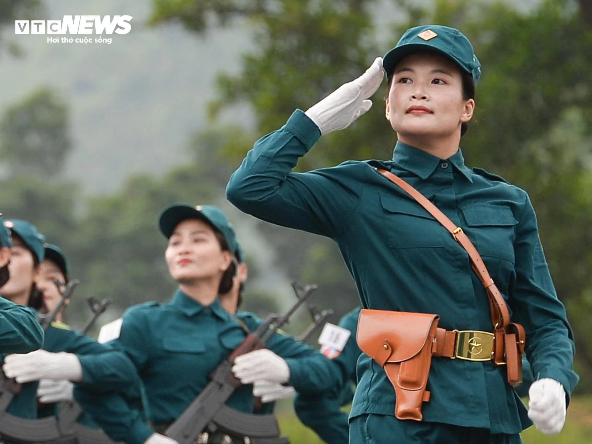 | Theo kế hoạch, từ nay đến tháng 8, các đơn vị sẽ tiếp tục rèn luyện, tinh chỉnh kỹ thuật đội hình, tổ chức sơ duyệt và tổng duyệt trước khi bước vào Lễ diễu binh, diễu hành chính thức vào ngày 2/9/2025 tại Quảng trường Ba Đình. (Trong ảnh là khối nữ du kích miền Nam). |