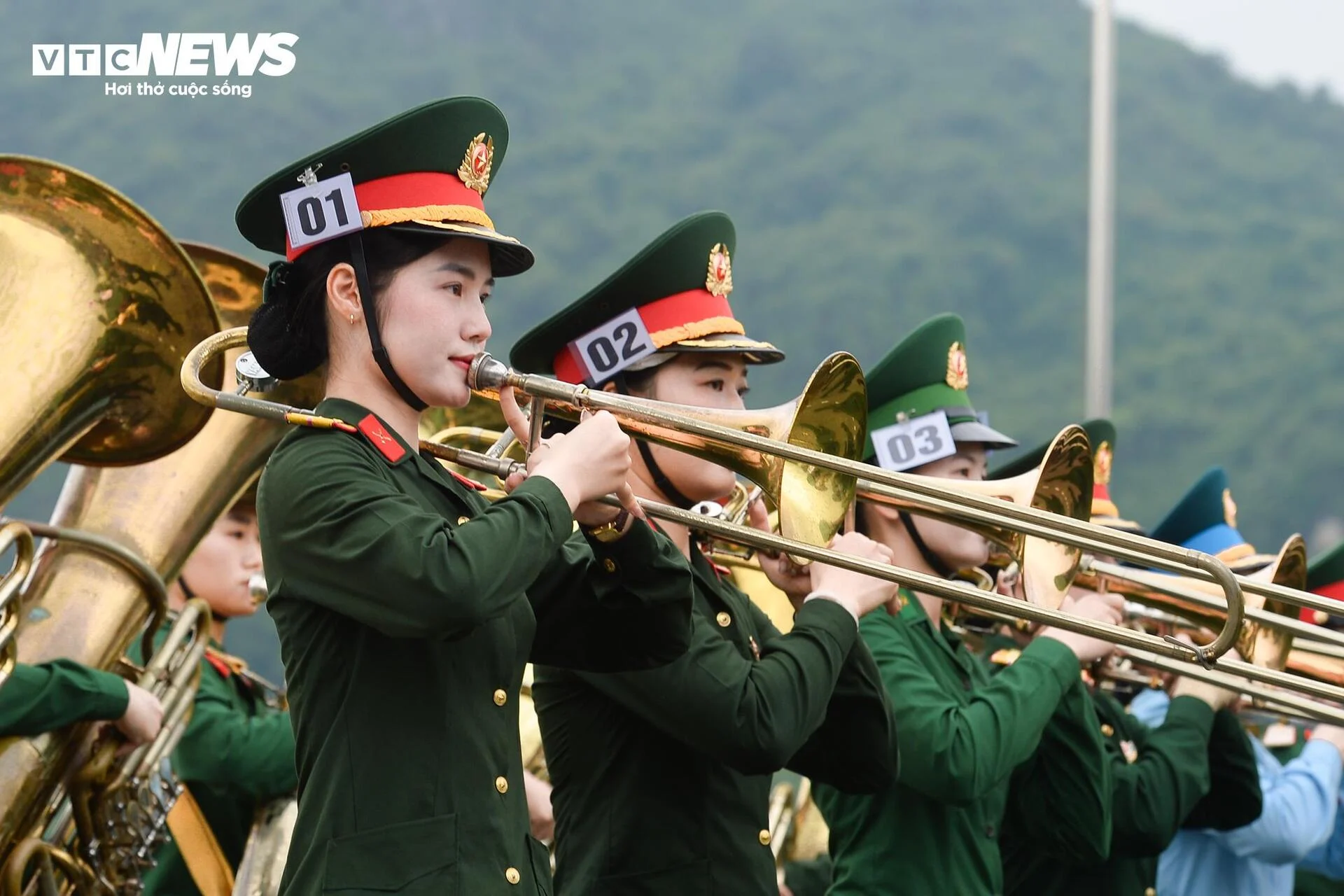 | Trong số hơn 7.400 cán bộ, chiến sĩ thuộc các lực lượng, khối nữ quân nhạc luôn là tâm điểm chú ý khi xuất hiện với đội hình chỉnh tề, trang phục gọn gàng, khuôn mặt rạng ngời, đầy thần thái. |