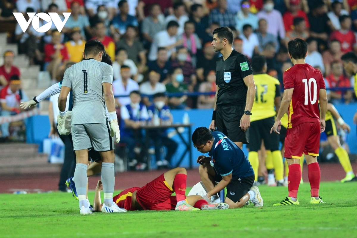 Lê Văn Xuân gặp chấn thương khá nặng từ pha bóng như vậy.