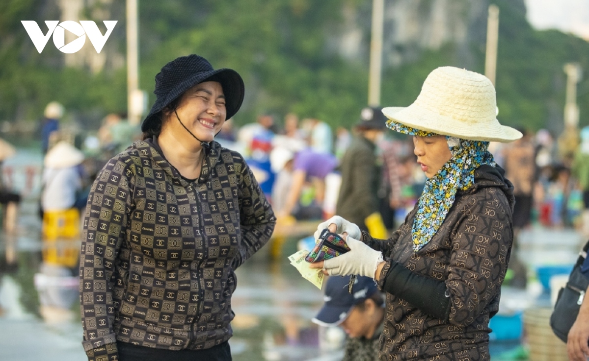 Giá cả phải chăng và chất lượng hải sản tươi ngon, đậm đà nức tiếng cũng thu hút nhiều người dân, du khách tới đây, vừa mua được đồ tươi, vừa tham quan, trải nghiệm không khí phiên chợ sớm. |