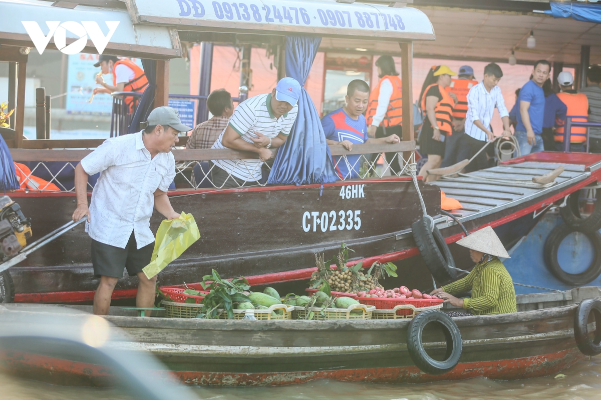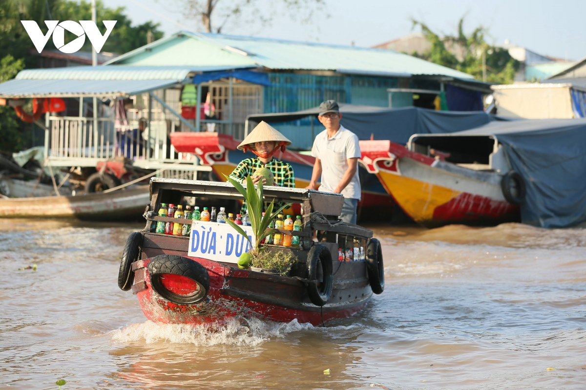 | Người dân buôn bán với nhau từ ghe này qua ghe khác bằng cách tung hứng hoặc chuyền tay các món đồ. Các mặt hàng chủ yếu tại chợ là nông sản, đồ thủ công và nhu yếu phẩm. Hoà mình vào không khí của buổi chợ, du khách có thể tìm hiểu cuộc sống sông nước của người dân, trên những "căn hộ di động" với đầy đủ tivi, bếp nấu, cây cảnh… |