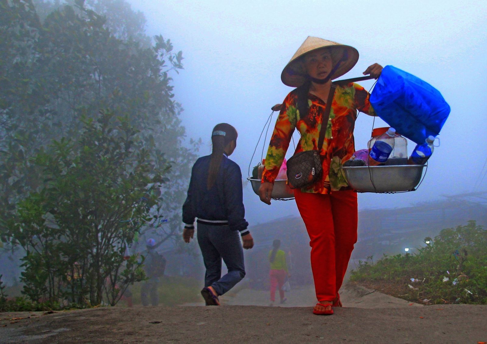 Đường lên núi sương mù thường phủ kín lối đi, nhất là vào buổi sáng sớm, mây mù và sương rơi trắng xóa, tạo cho ta có cảm giác đây như là chốn bồng lai tiên cảnh…