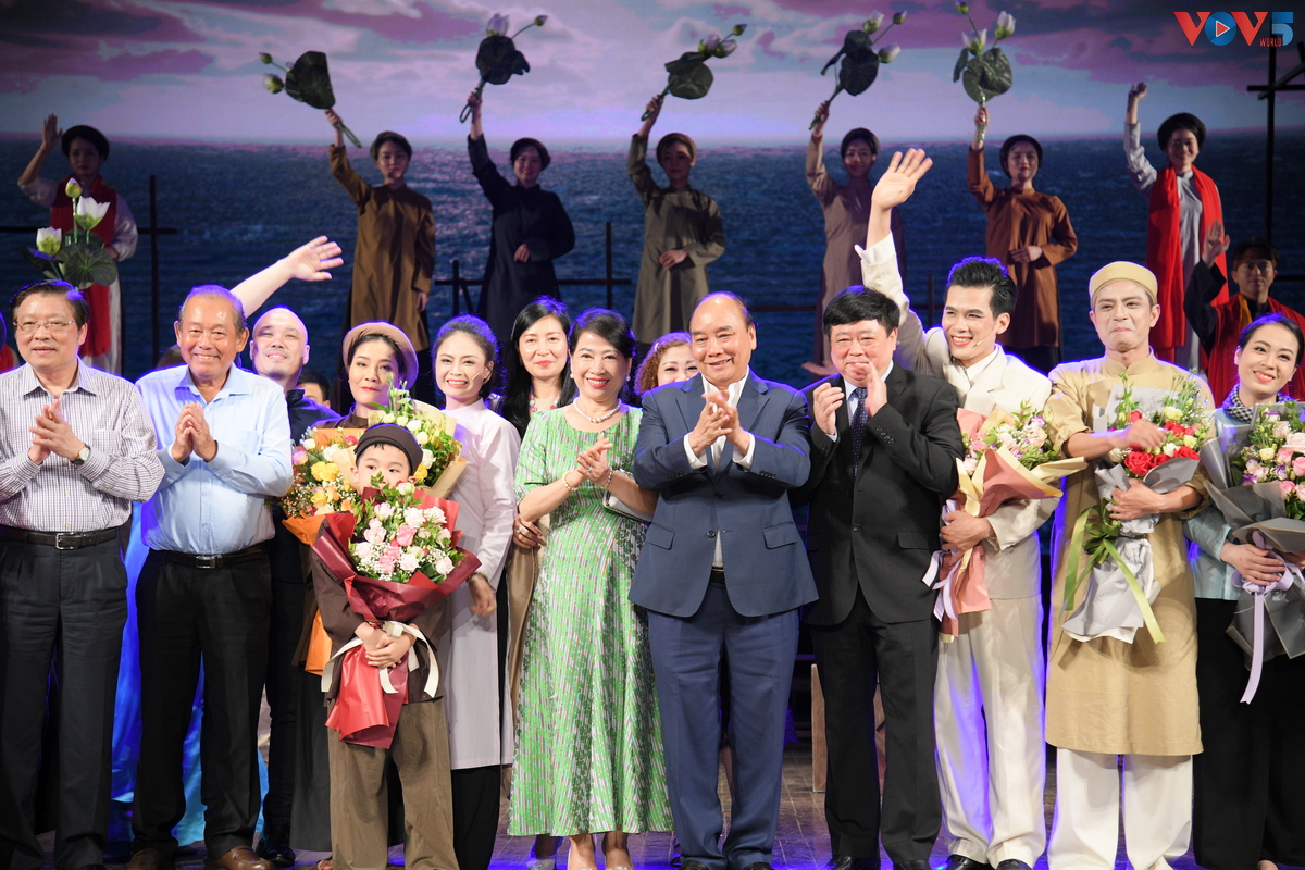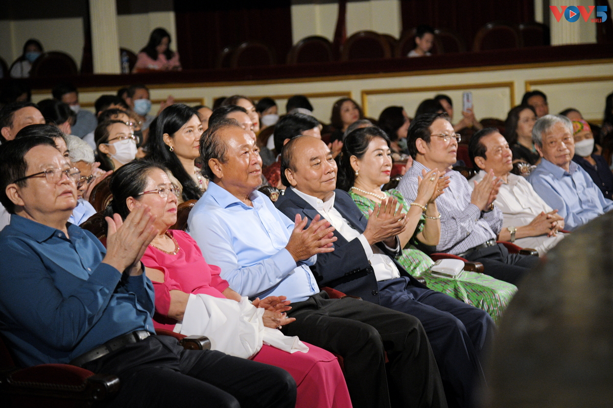 | Chủ tịch nước Nguyễn Xuân Phúc cùng phu nhân cùng nhiều đồng chỉ lãnh đạo đảng nhà nước đã tới tham dự buổi công diễn. |