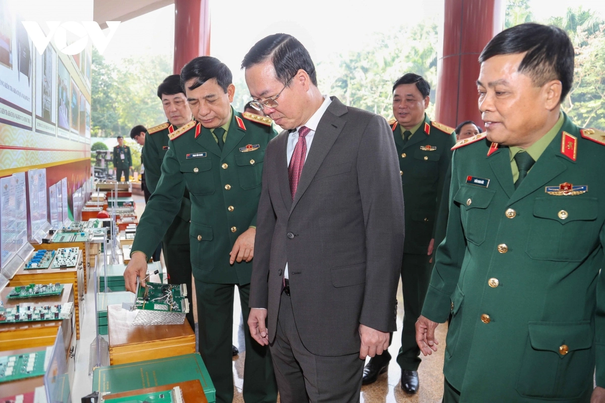 Chủ tịch nước Võ Văn Thưởng và các đại biểu tham quan các sản phẩm trưng bày tại hội nghị.