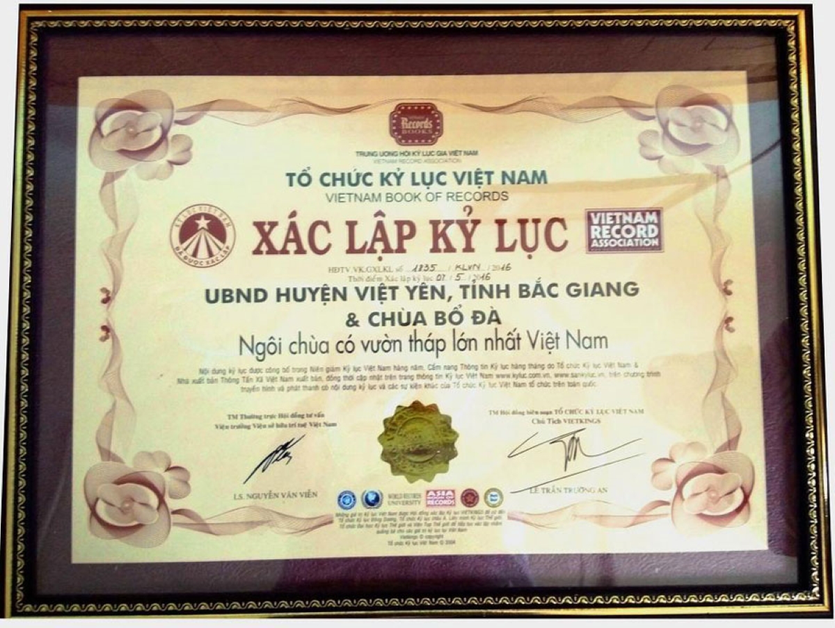 Với những giá trị quý báu, ý nghĩa tâm linh to lớn, vườn tháp chùa Bổ Đà đã được Hội kỷ lục gia Việt Nam công nhận là “Vườn tháp lớn nhất Việt Nam”. Ảnh: Báo Bắc Giang |