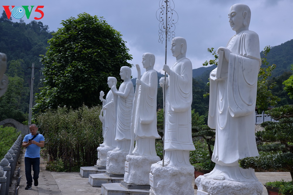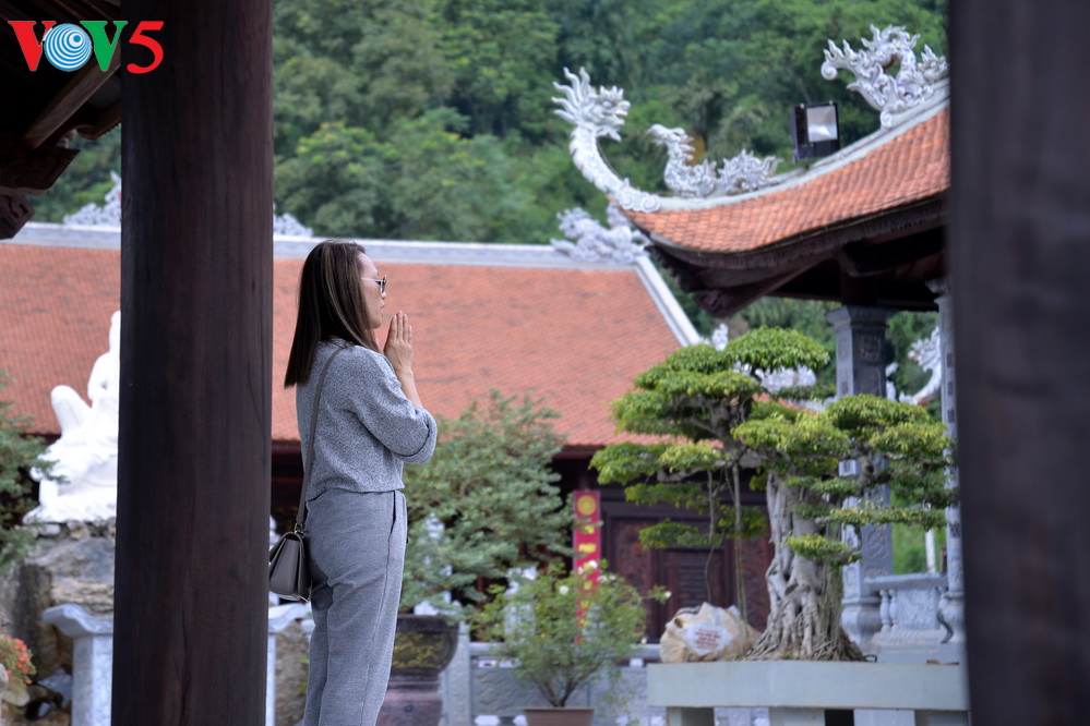 | Các điện thờ Thánh Mẫu, đại bảo tháp, điện Văn Thù, Phổ Hiền, Quán Âm đều thu hút du khách thập phương, tin đồ phật tử tới dâng hương. |