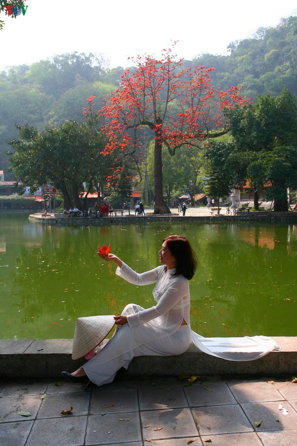 Như lời hẹn ước, tới tháng Ba, những cây hoa gạo ở Chùa Thầy (xã Sài Sơn, huyện Quốc Oai, Hà Nội) lại nở hoa, làm nên nét đẹp rất riêng trong không gian ngôi chùa cổ kính. Hoa gạo nở đỏ rực nổi bật, ấn tượng thu hút mọi ánh nhìn.