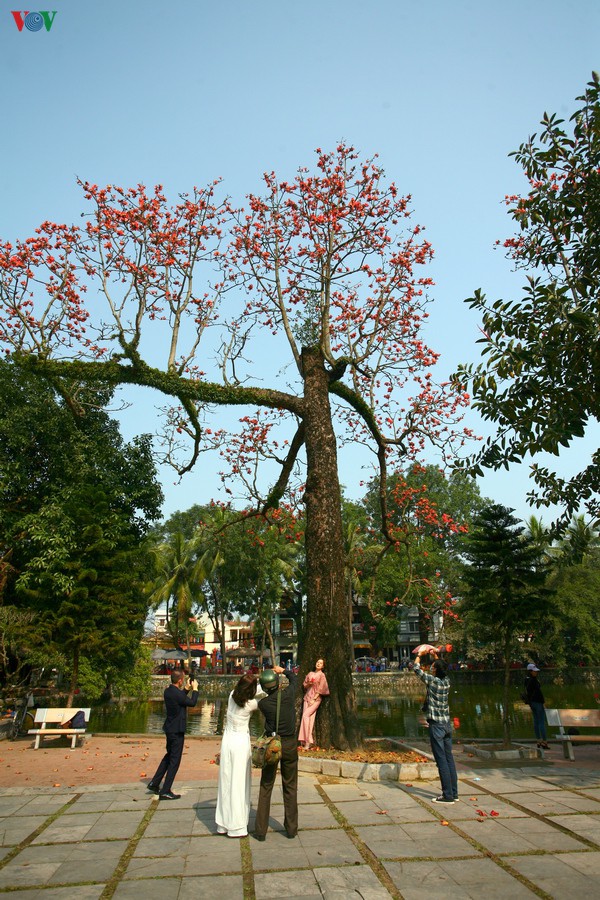 Rất nhiều người tìm tới đây để chụp ảnh cây hoa gạo đặc biệt này.