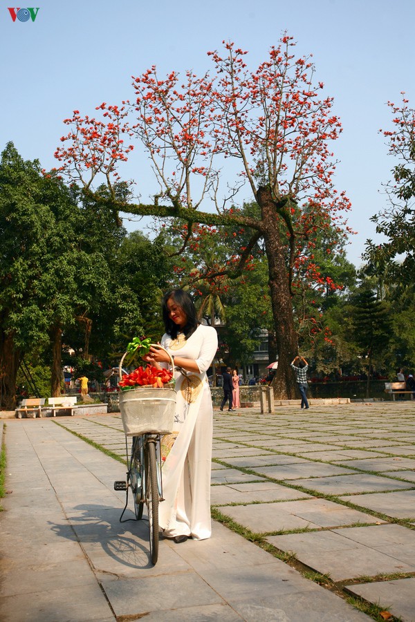 Rất nhanh chóng, nơi đây thành điểm đến của nhiều người tới chiêm ngưỡng vẻ đẹp hoa gạo và chụp ảnh lưu niệm với mùa hoa gạo.