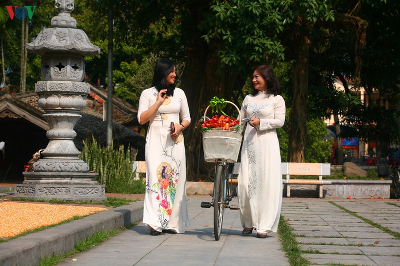Và những cô gái tha thướt trong những tà áo dài không bỏ lỡ cơ hội để ghi lại những hình ảnh đáng nhớ.