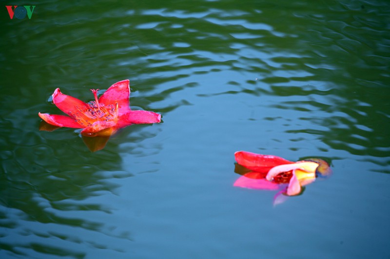Những bông hoa rụng trên mặt hồ vẫn như cồn cào thắp lửa