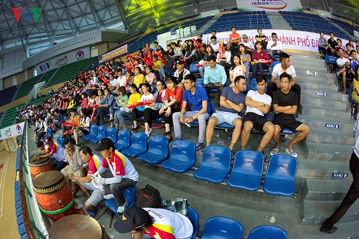 Các trận đấu tại giải futsal thu hút nhiều khán giả đến theo dõi.