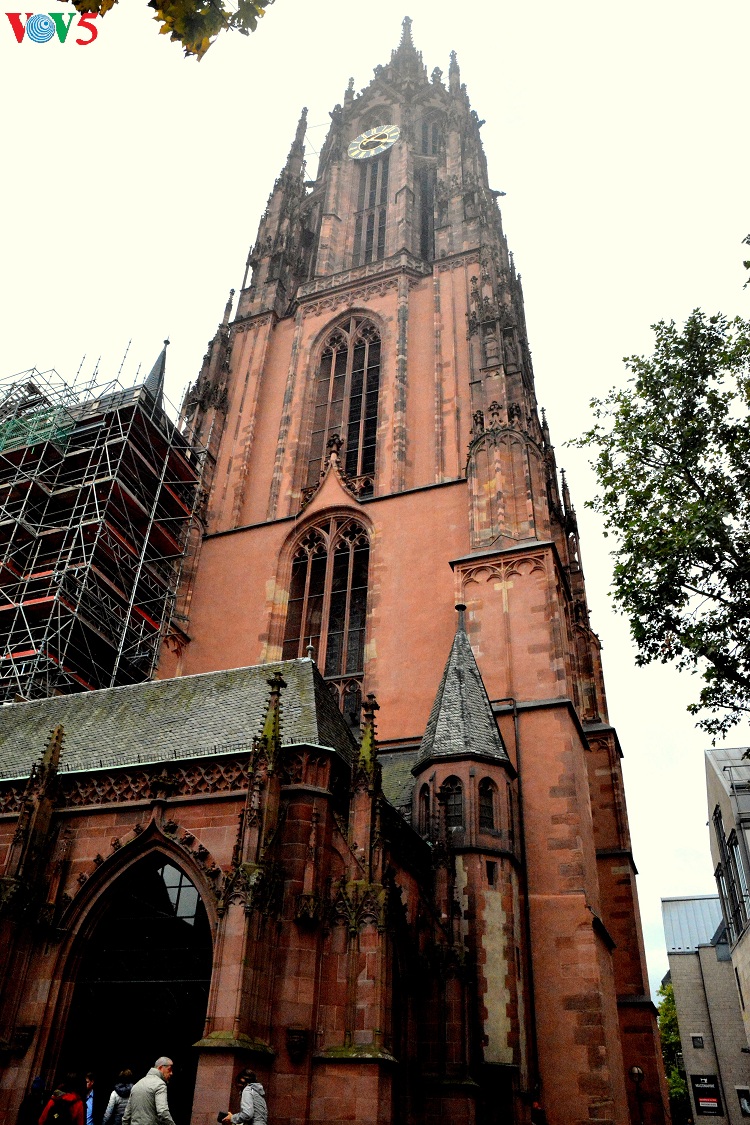 Nhà thờ lớn (Kaiserdom St. Bartholomäus) với ngọn tháp phía tây thuộc thời Hậu Gothic, là nơi bầu và thăng quan của hoàng đế Đức. |