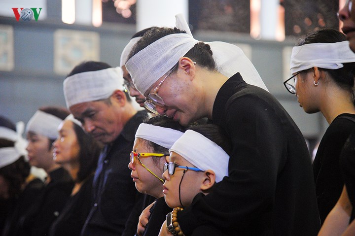 | Vợ và con cháu nhạc sĩ Thế Song nghẹn ngào trong giây phút tiễn biệt người chồng, người cha, người ông về nơi an nghỉ cuối cùng. |